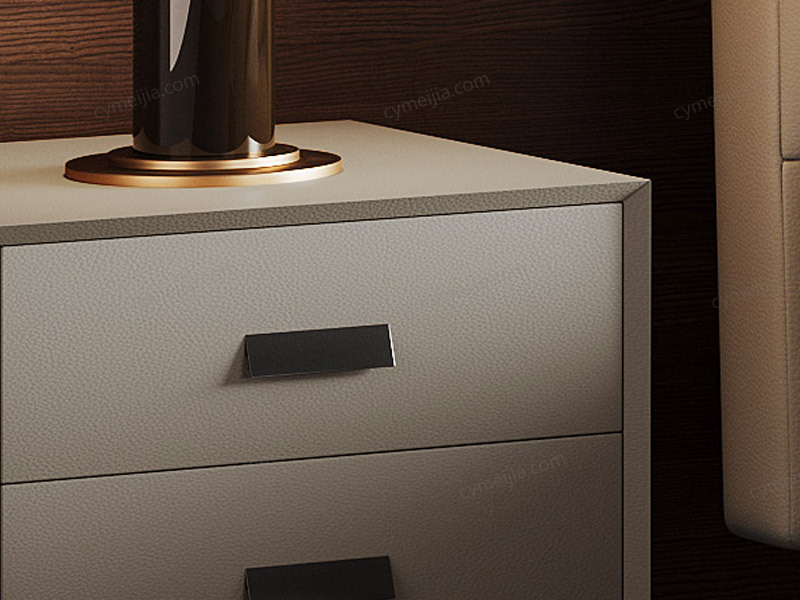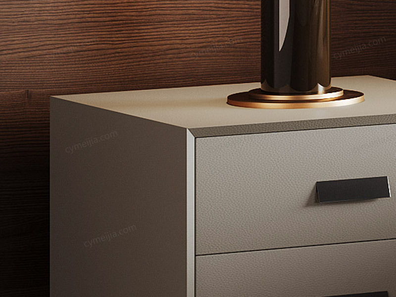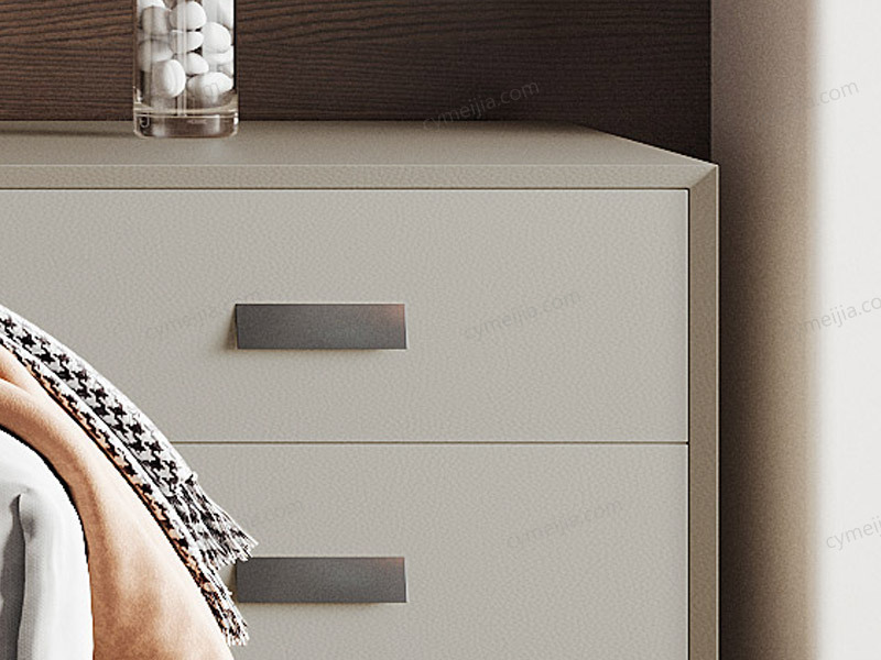 | 产品材质 : | 扪皮+全实木柜体+松木抽屉+五金脚 |