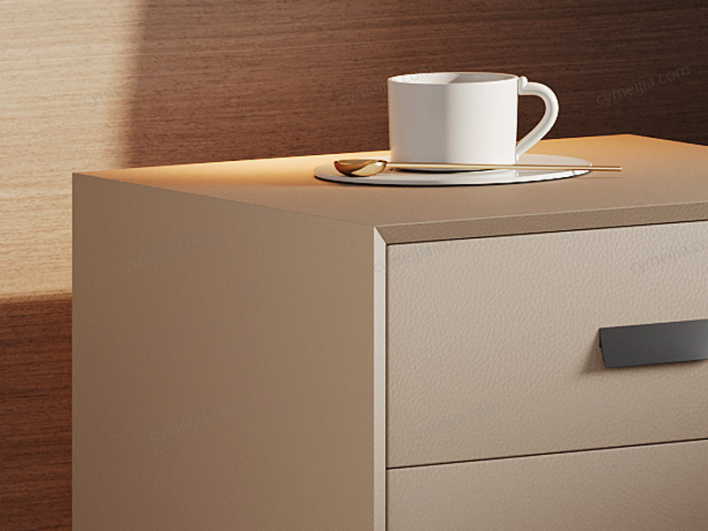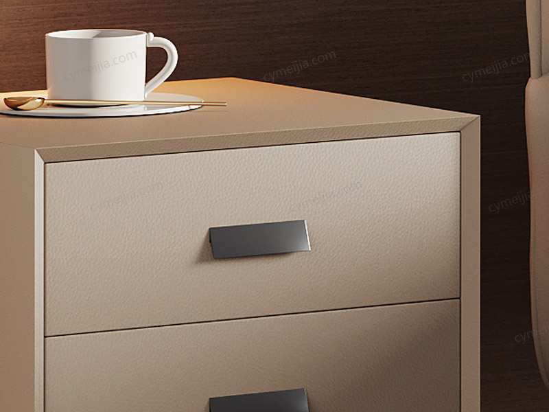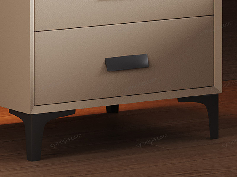 | 产品材质 : | 扪皮+全实木柜体+松木抽屉+五金脚 |