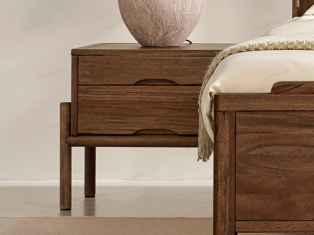 ◕ 精选级进口胡桃木与奥古曼木,材质上乘,为床头柜奠定高品质基底,每一处木质肌理都彰显天然材质的珍贵。
