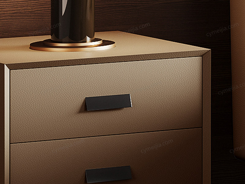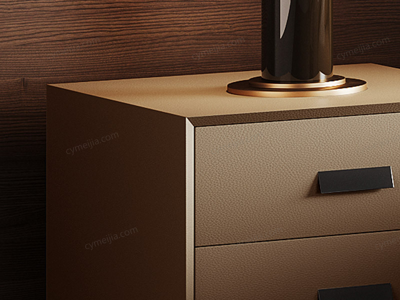 | 产品材质 : | 扪皮+全实木柜体+松木抽屉+五金脚 |
