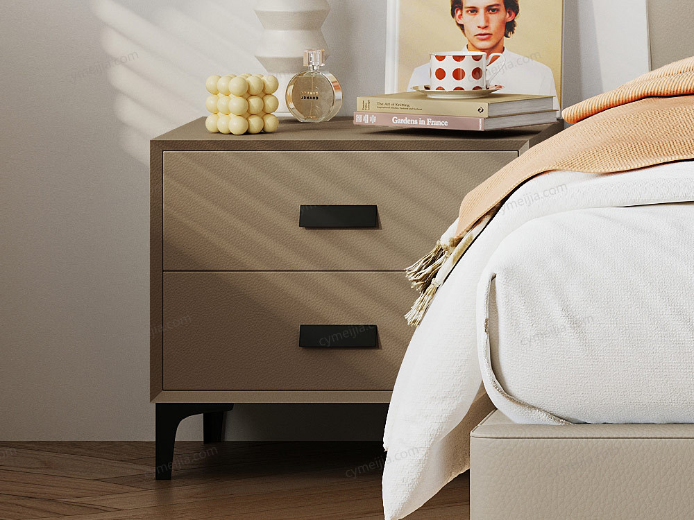 | 产品材质 : | 皮艺+五金脚+松木柜体+松木抽屉 |