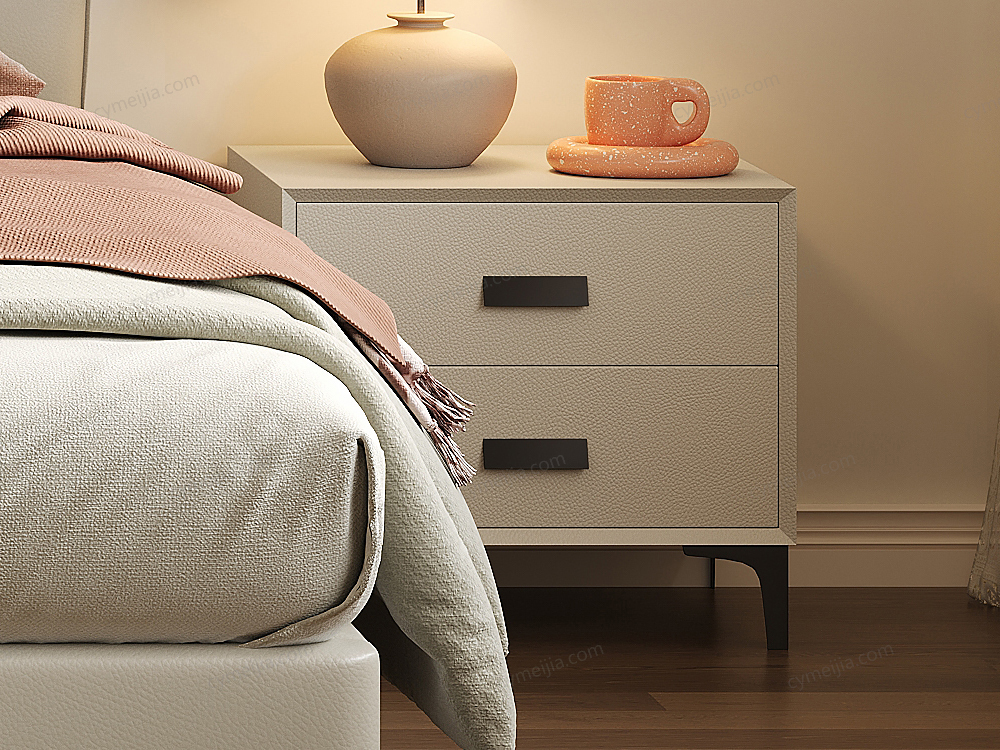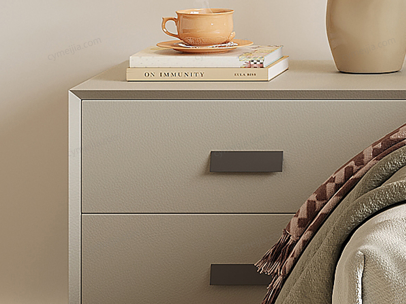 | 产品材质 : | 扪皮+全实木柜体+松木抽屉+五金脚 |
