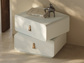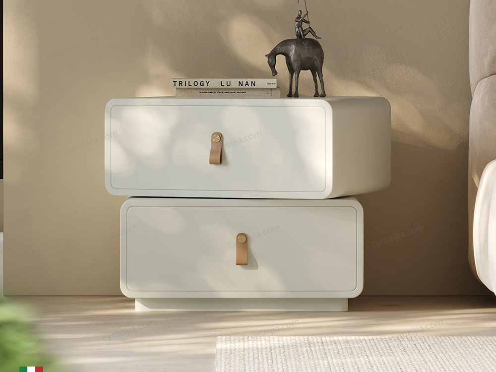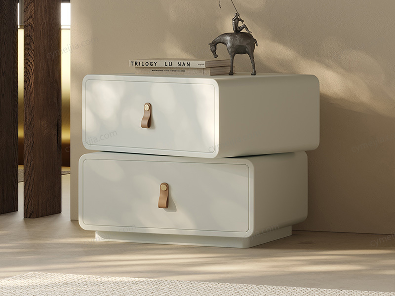 | 产品材质 : | 奶油色烤漆+E1级环保板+拖底缓冲导轨+麻布纹抽屉 |