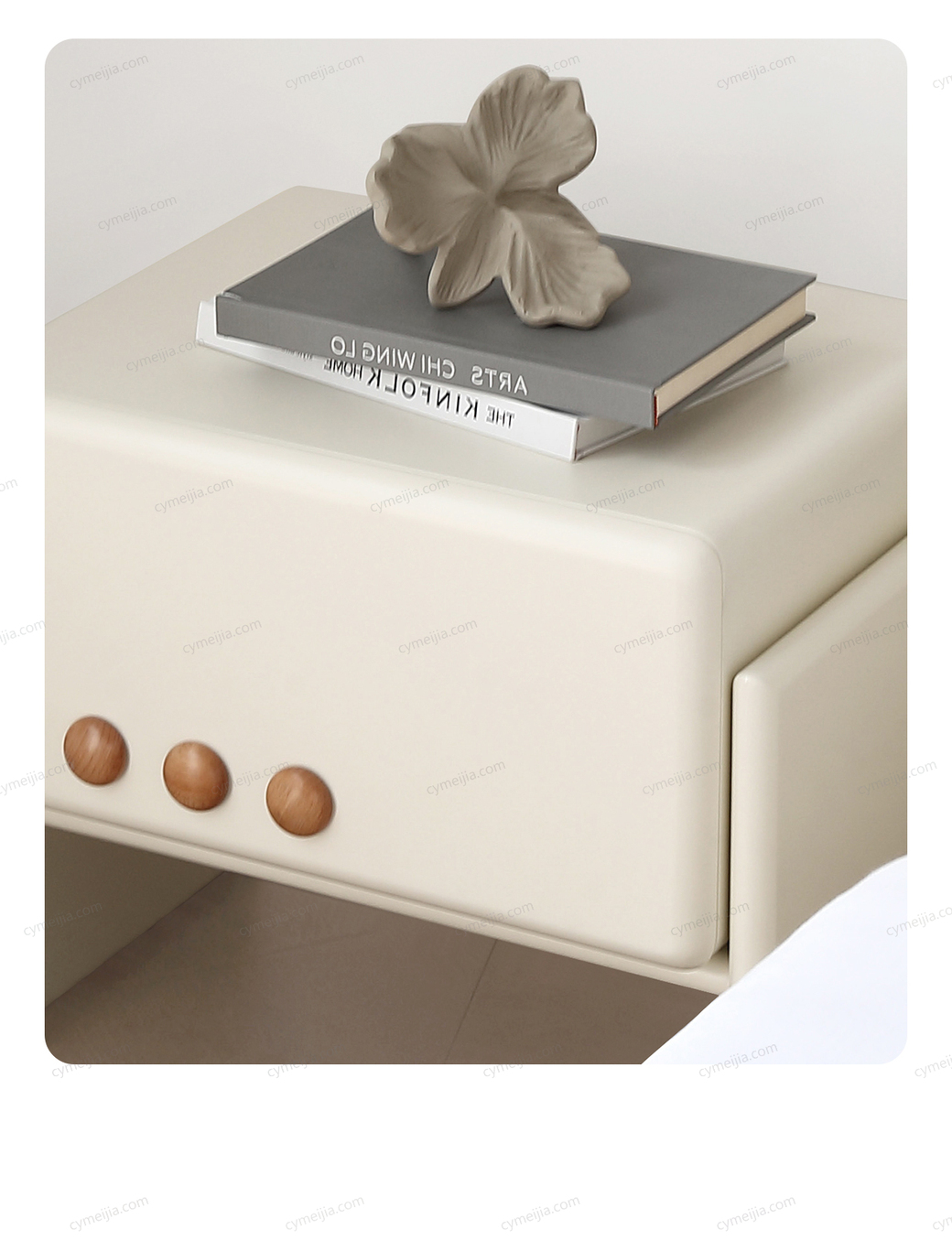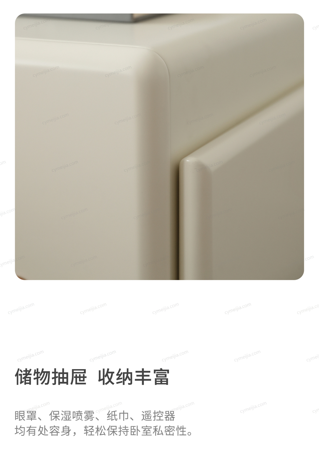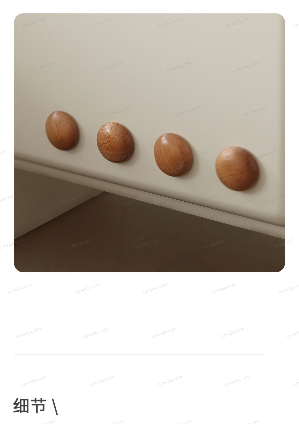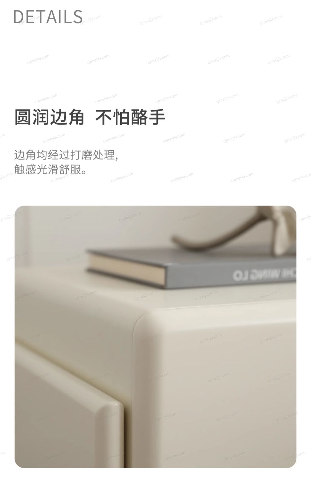 | 产品材质 : | 奶白烤漆+全实木绒布抽屉+托底缓冲导轨+E1级环保板 |