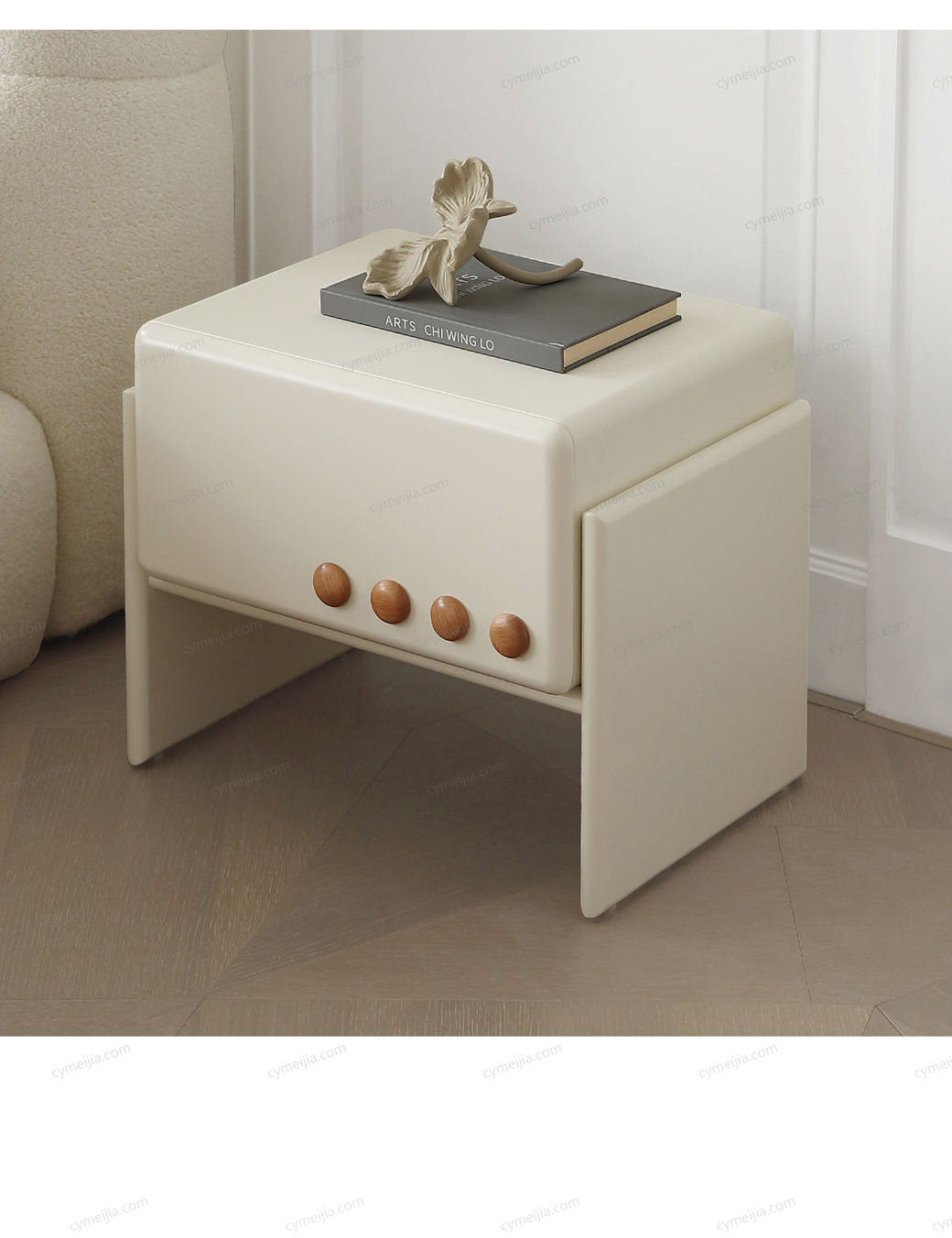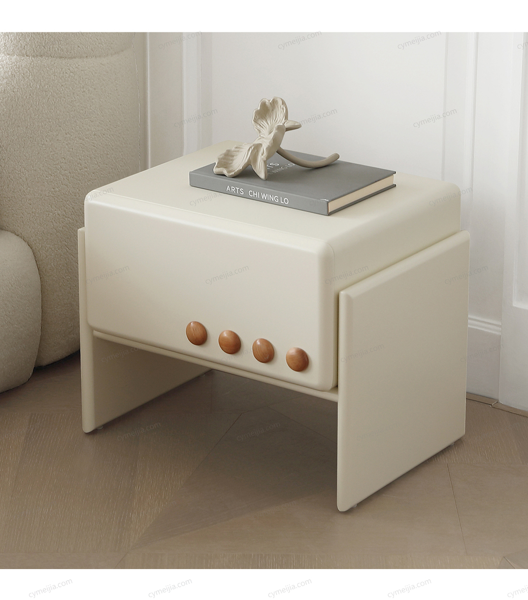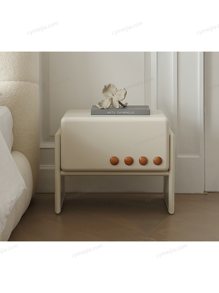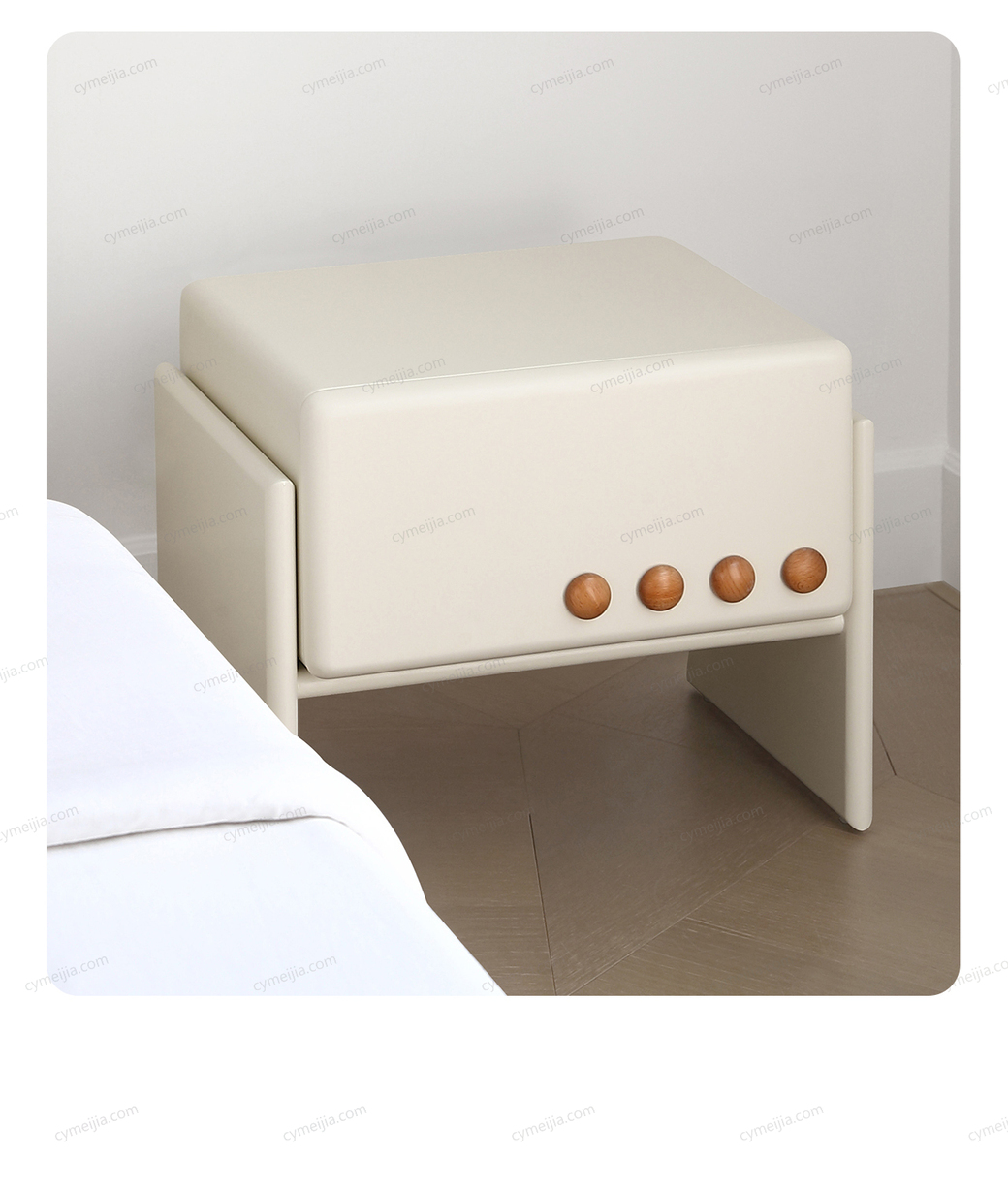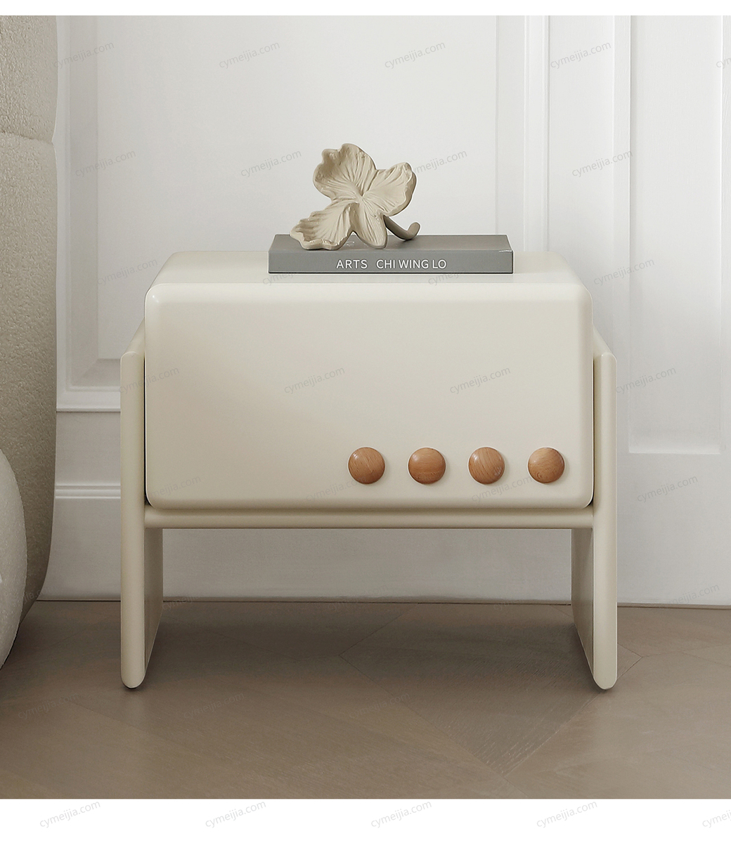 | 产品材质 : | 奶白烤漆+全实木绒布抽屉+托底缓冲导轨+E1级环保板 |
