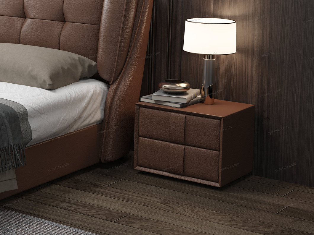 | 产品材质 : | 扪皮+松木柜体+松木抽屉+橡胶木脚+金属脚套 |