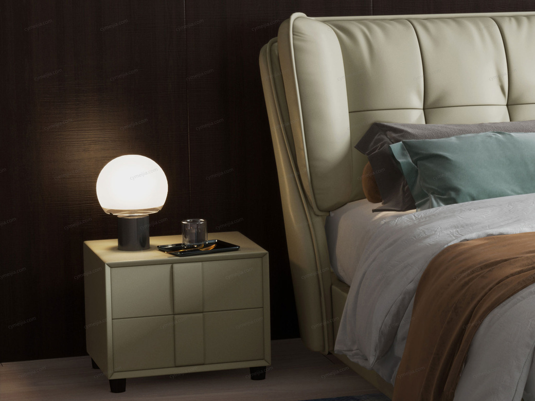 | 产品材质 : | 扪皮+松木柜体+松木抽屉+橡胶木脚 |