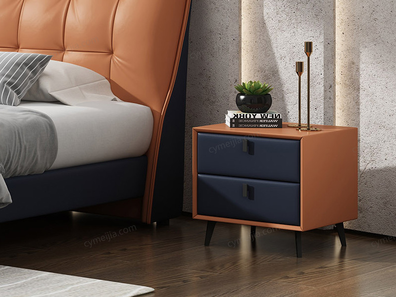 | 产品材质 : | 仿皮+实木抽屉+黑磨砂铁五金脚 |