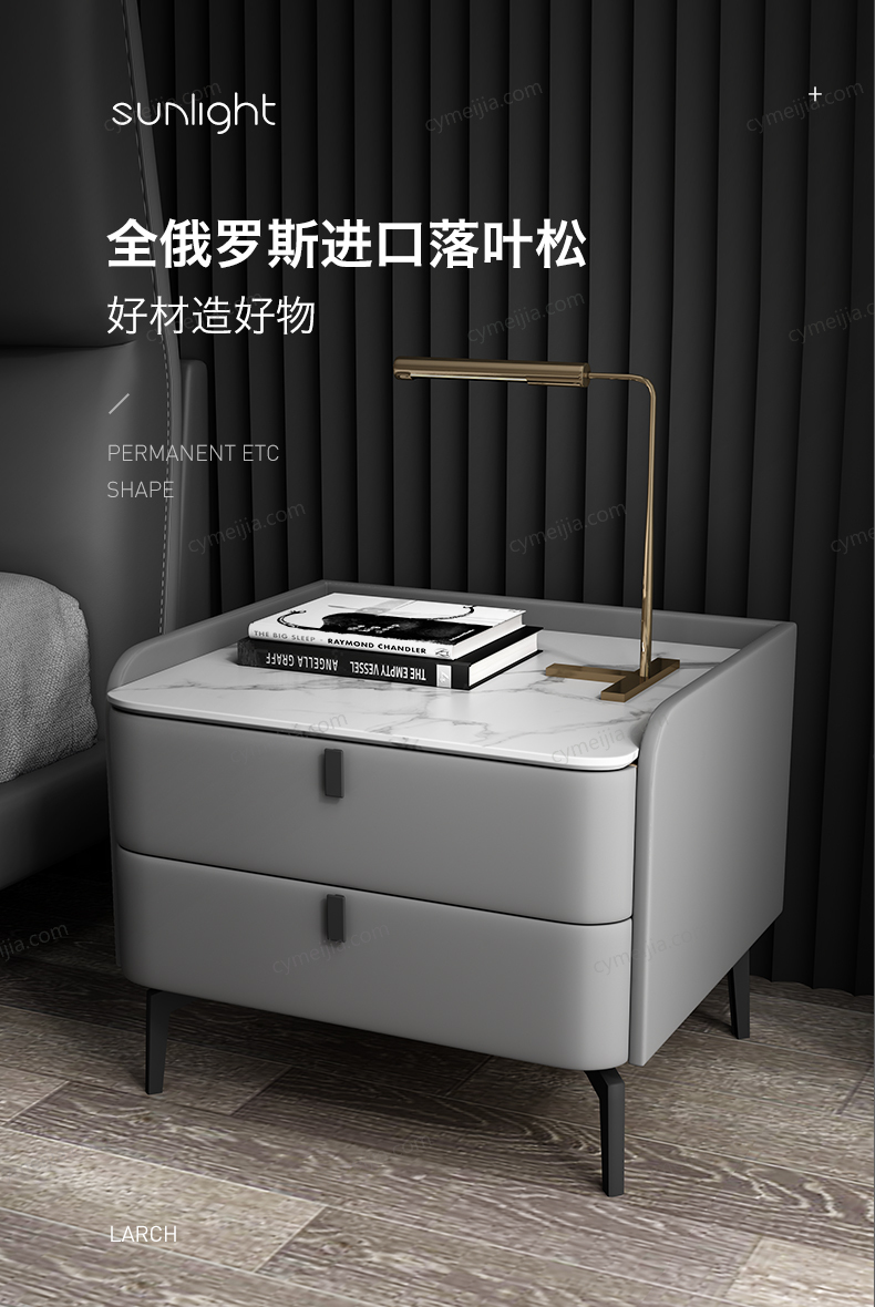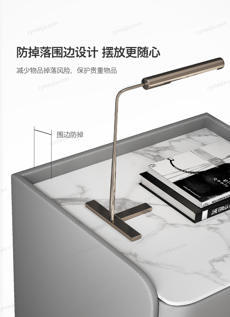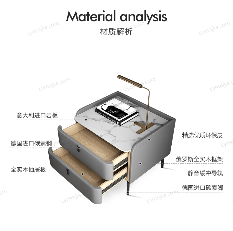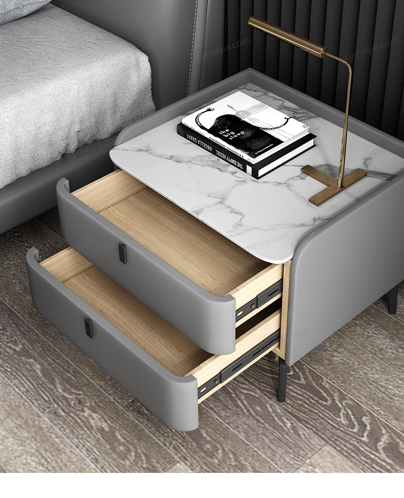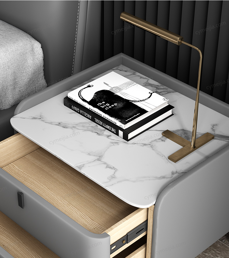 | 产品材质 : | 岩板+实木内架+扪优质皮+缓冲滑轨+碳素钢脚 |