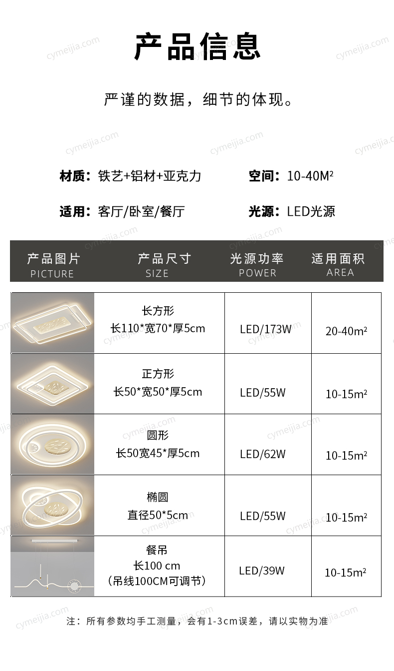 | 灯体尺寸 : | 50*6(圆),50*50*5,110*70*6,100*100*8cm |