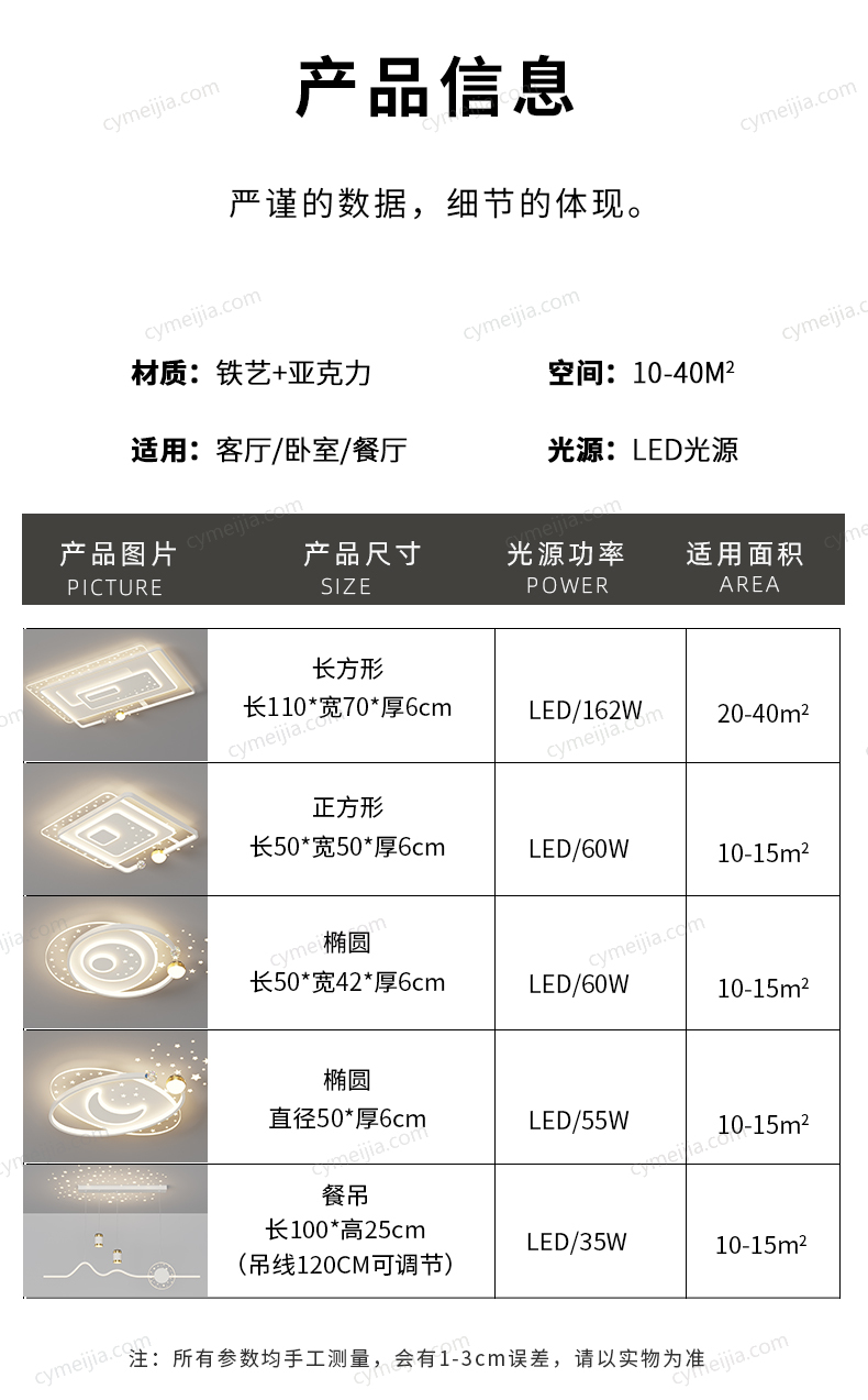 | 灯体尺寸 : | 50*42*6(圆),50*50*6,50*6(椭圆),110*70*6,100*100*10cm |