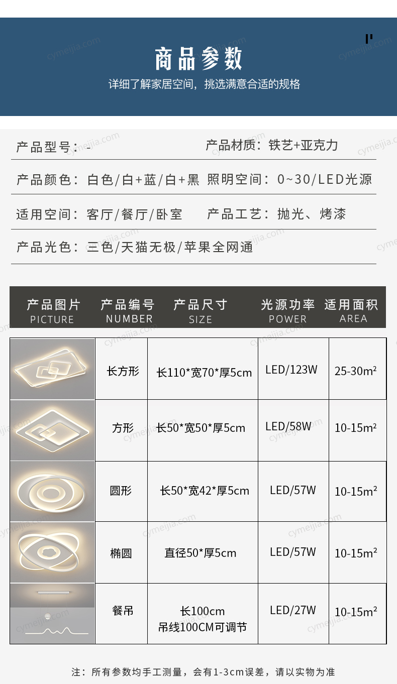 | 灯体尺寸 : | 50*42*5(圆),50*50*5,110*70*5,100*100*10cm |