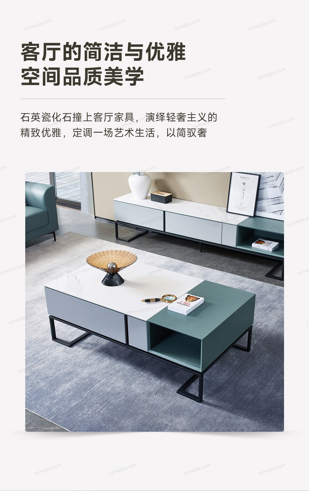 | 产品材质 : | 雅士白哑光岩板+黑砂五金脚 |