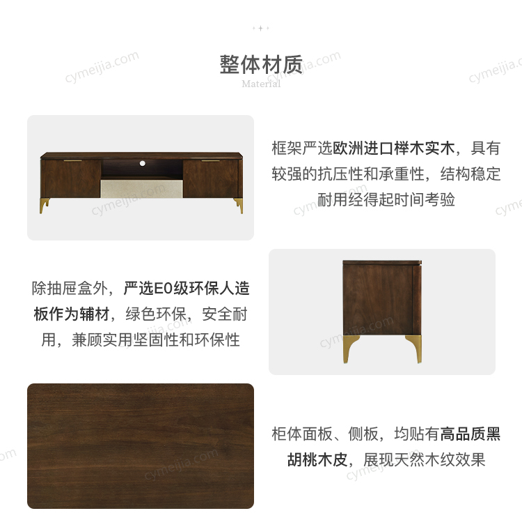 | 产品材质 : | 榉木+黑胡桃木皮+环保人造板+再生皮 |