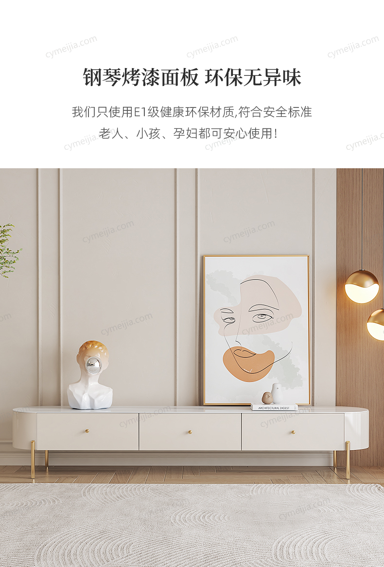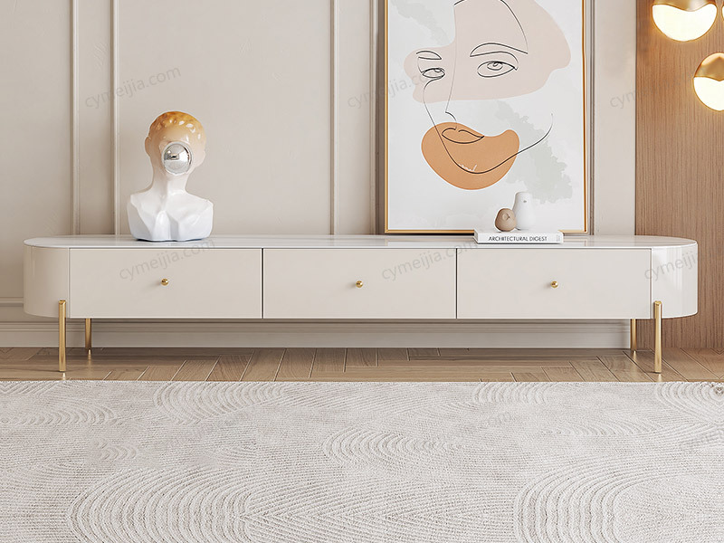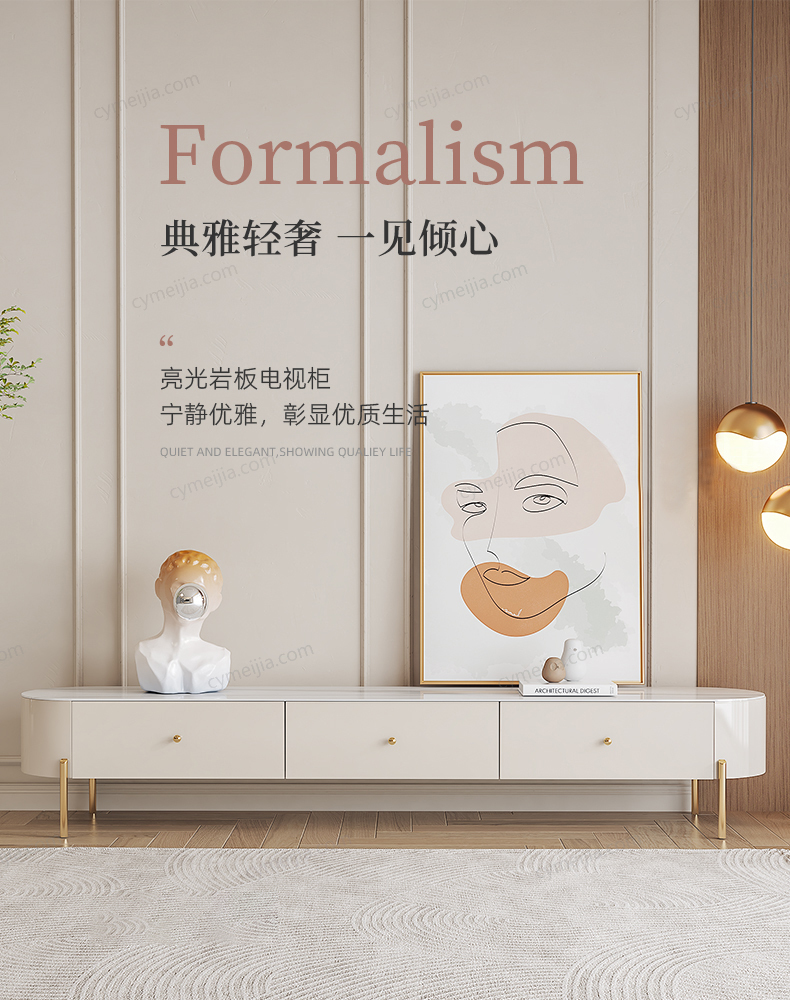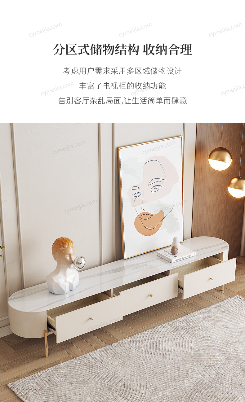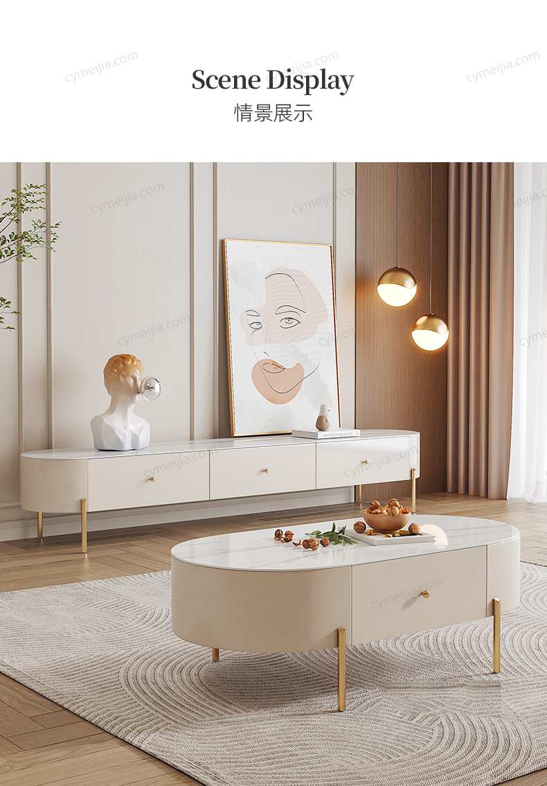 | 产品材质 : | 亮光雪山石岩板+实木抽屉 +中纤板+15cm铁镀钛金脚 |
