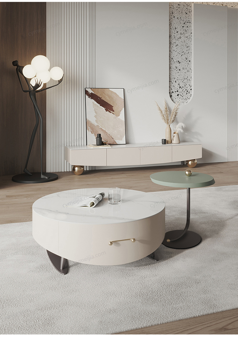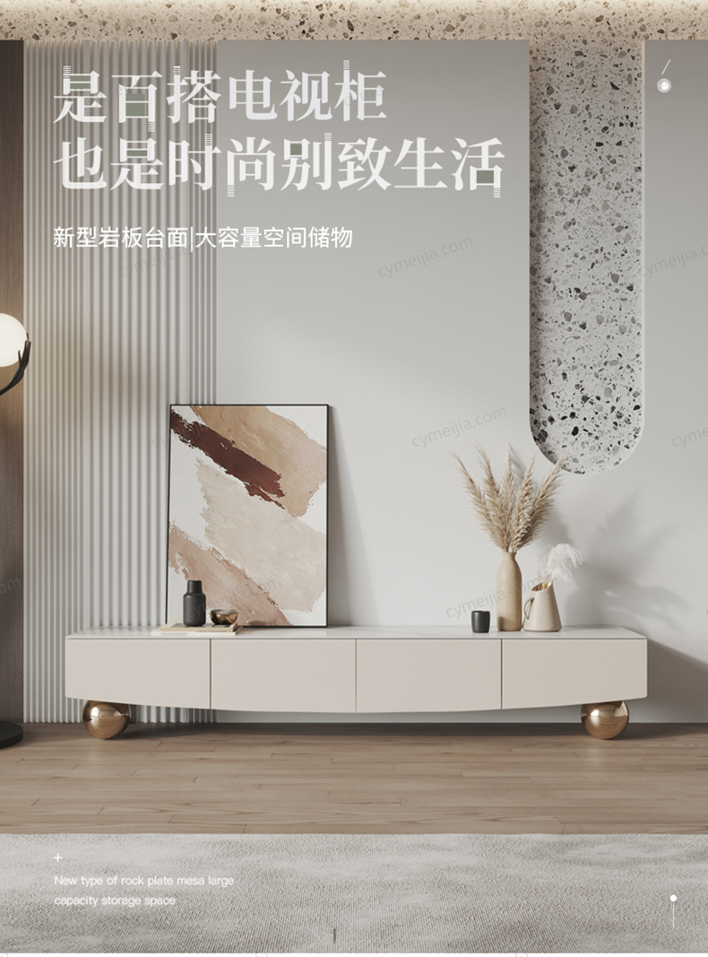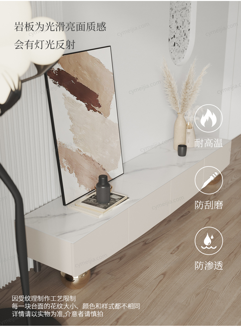 | 产品材质 : | 岩板+密度板+实色漆+碳素钢脚+香槟金不锈钢球 |