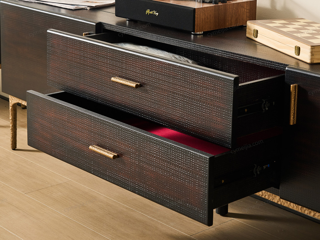 | 产品材质 : | 表面微雕进口橡胶木+金属拉手+复合金属脚+优质金属漆+装饰铜件 |
