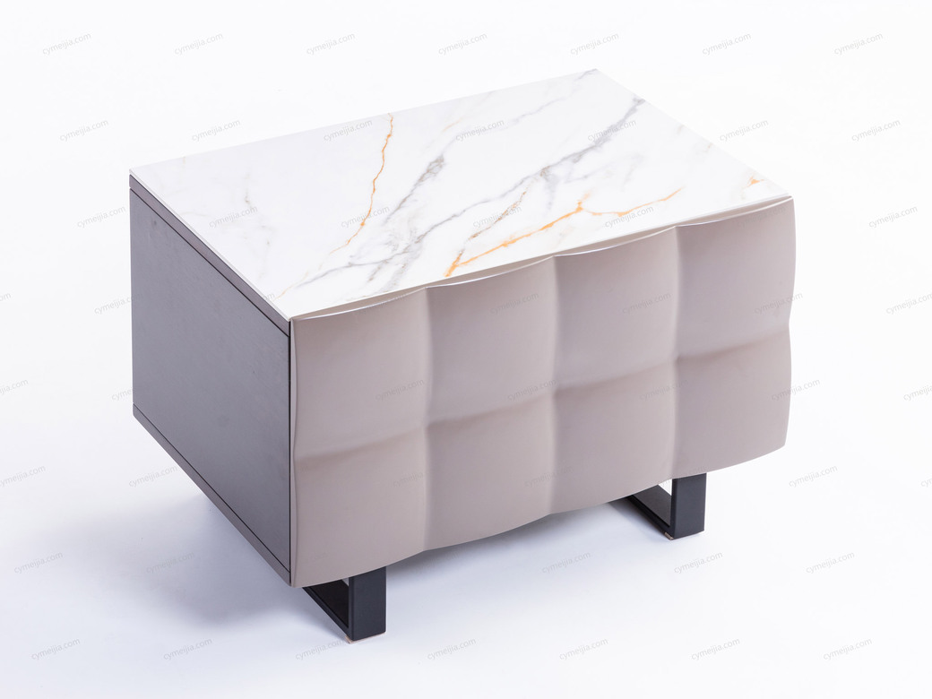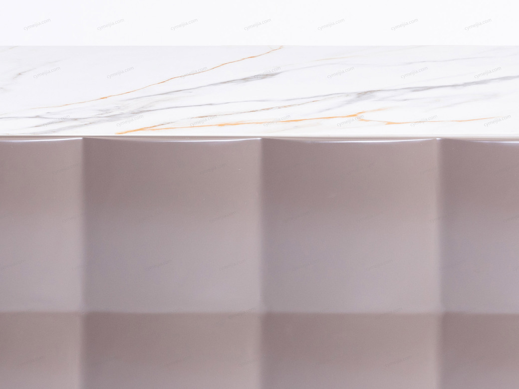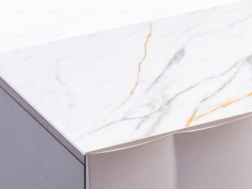 | 产品材质 : | 流金白哑光岩板+实木抽屉+E1级高密度板(灰胡桃色木皮+神秘玛雅灰烤漆)+ 碳素钢脚架 |
