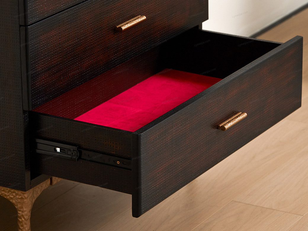 | 产品材质 : | 表面微雕进口橡胶木+金属拉手+复合金属脚+优质金属漆+装饰铜件 |