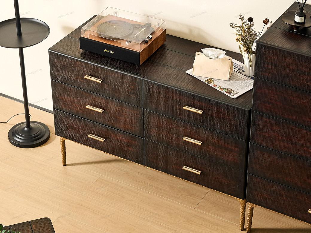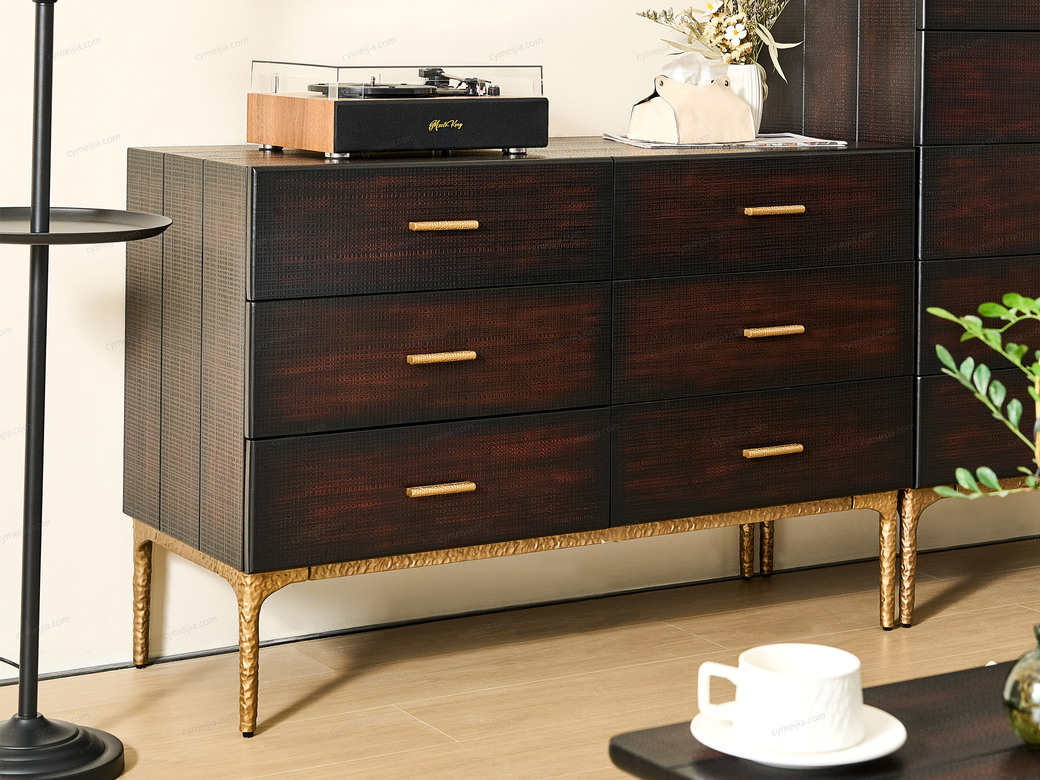 | 产品材质 : | 表面微雕进口橡胶木+金属拉手+复合金属脚+优质金属漆+装饰铜件 |