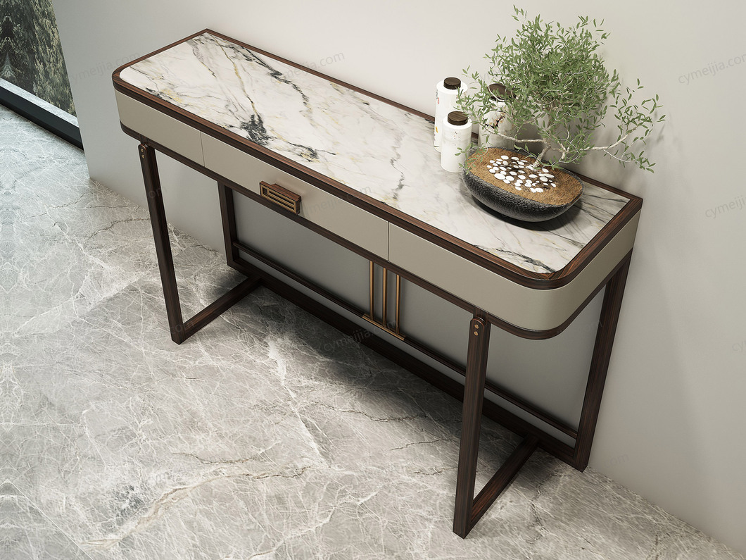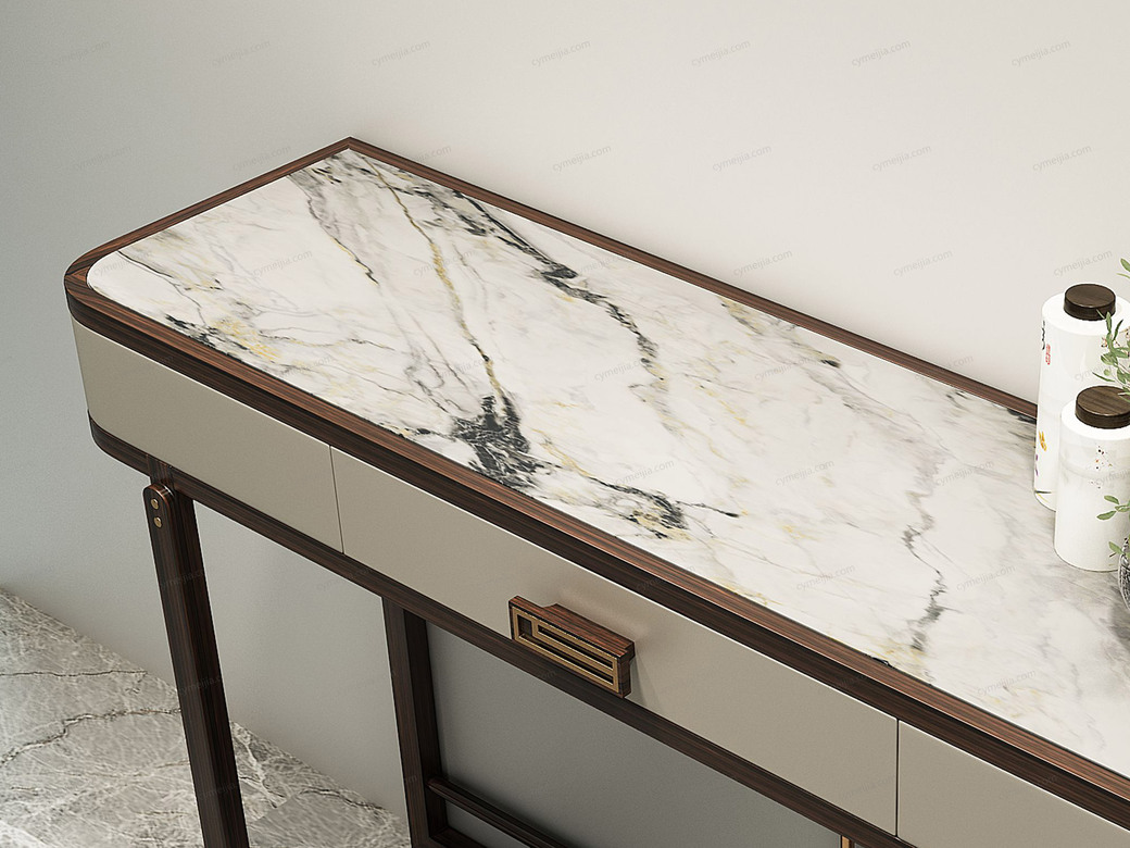 | 产品材质 : | 小叶龙凤檀木+纳帕皮+镀铜五金+冷翡翠岩板 |