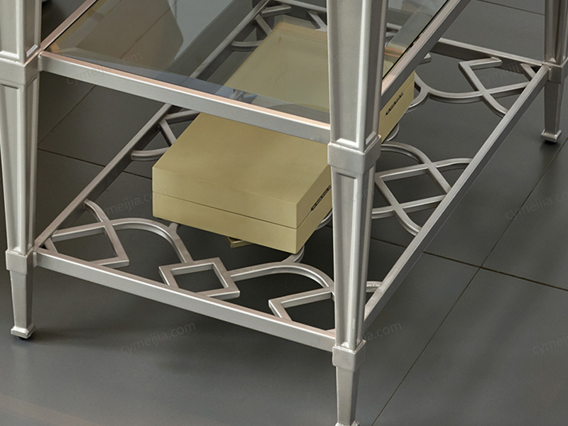 | 产品材质 : | 欧洲进口榉木木框+铁艺脚+金属层架+玻璃 |