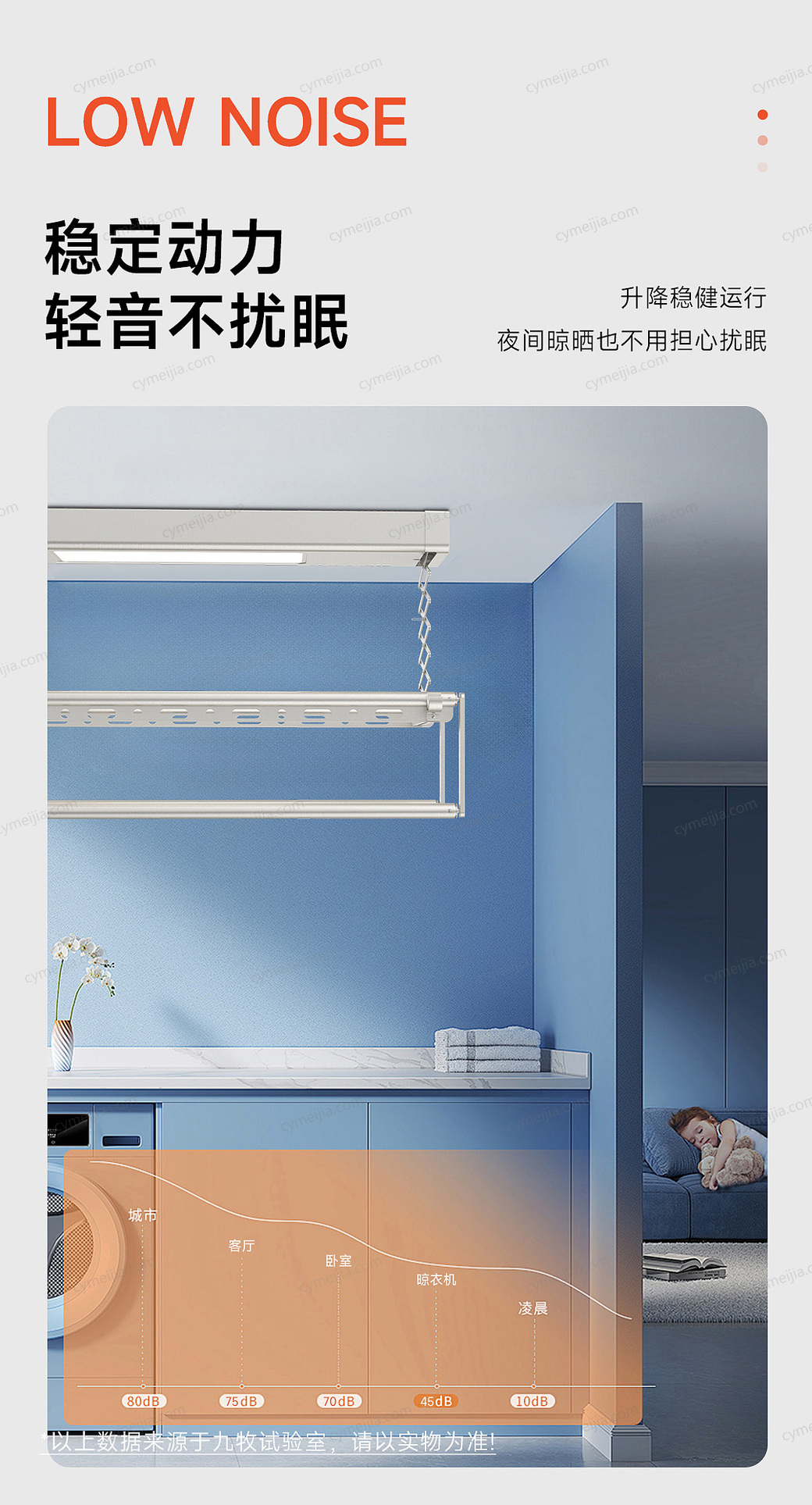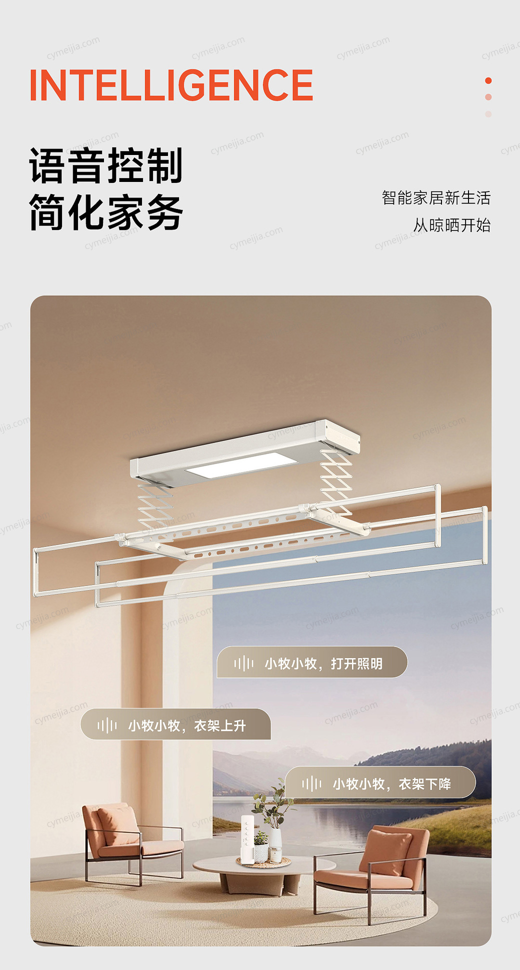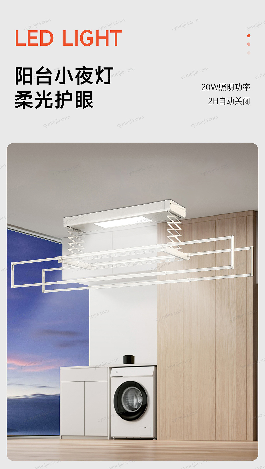 | 产品功能 : | 大屏照明、静音电机+伸缩四杆、晾杆感应+记忆高度、轻抬上升+语音遥控 |