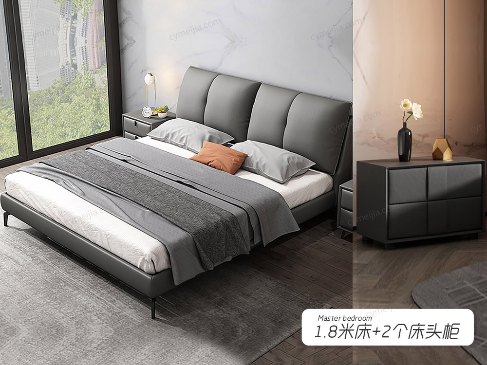 | 卧室 | 床: | 长2250*宽1820*高1150mm | 接触面进口头层黄牛皮+实木框架+实木夹板+固定海绵靠包+10公分松木排骨架 | ×1 | 卡罗亚 | 广东佛山 |