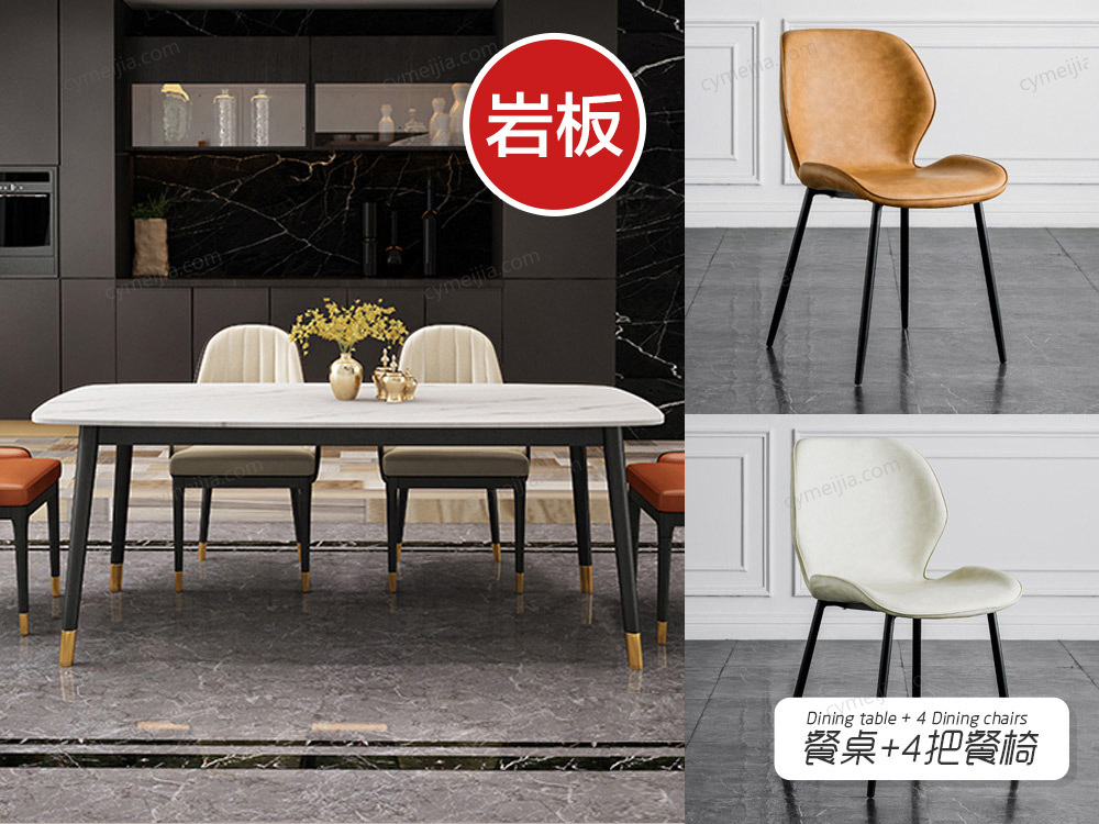 | 餐厅 | 餐桌: | 长1400*宽800*高750mm | 雪山石哑光岩板+粘15厘板(桌面)碳素钢黑砂+铜套(底架) | ×1 | 斐亚家居 | 广东佛山 |