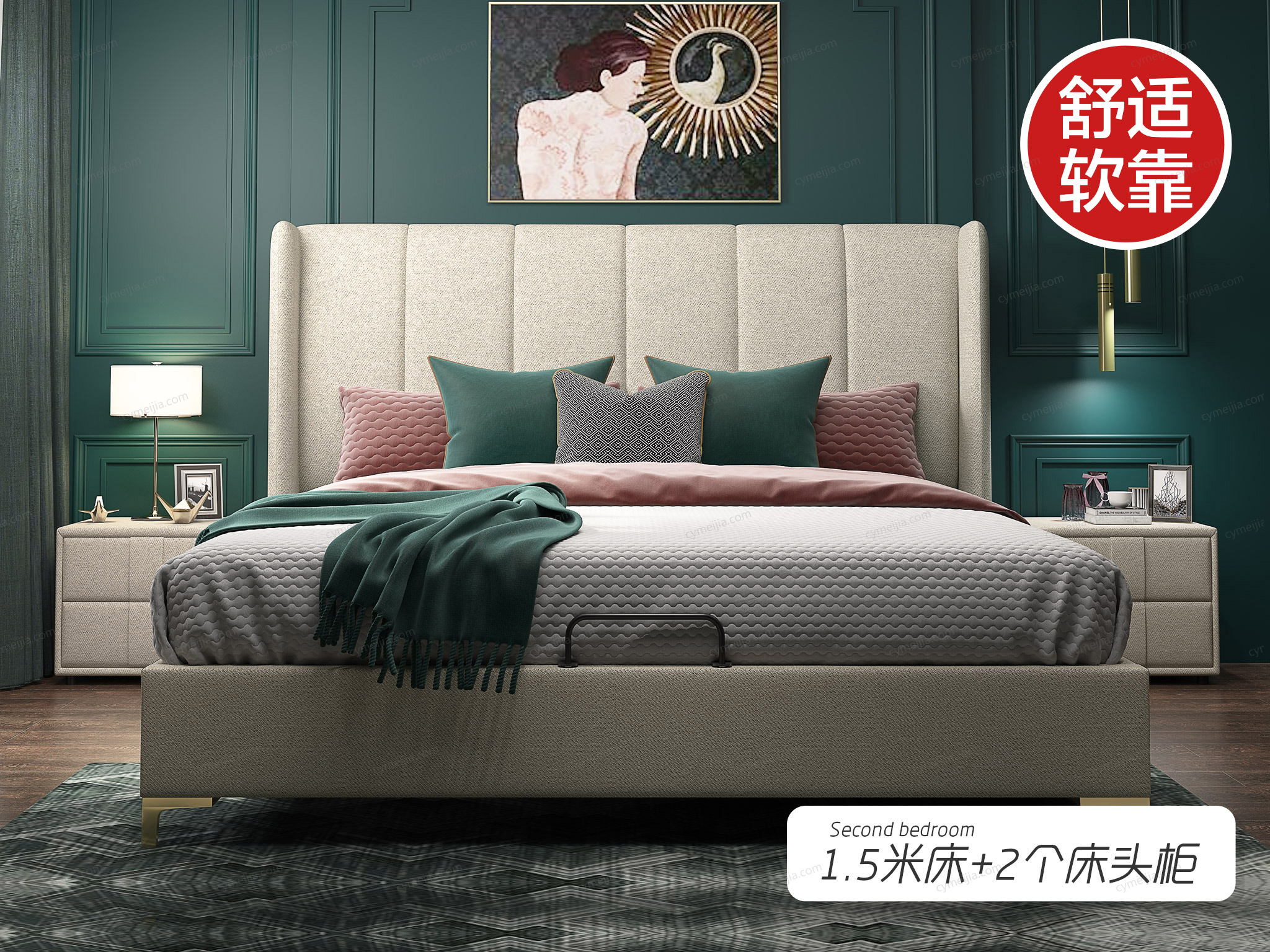 | 床: | 长2120*宽1610*高1100mm | 布艺+实木框架+海绵+10公分松木排骨架+金属脚 | ×1 | 皮艺工坊 | 广东佛山 | |
