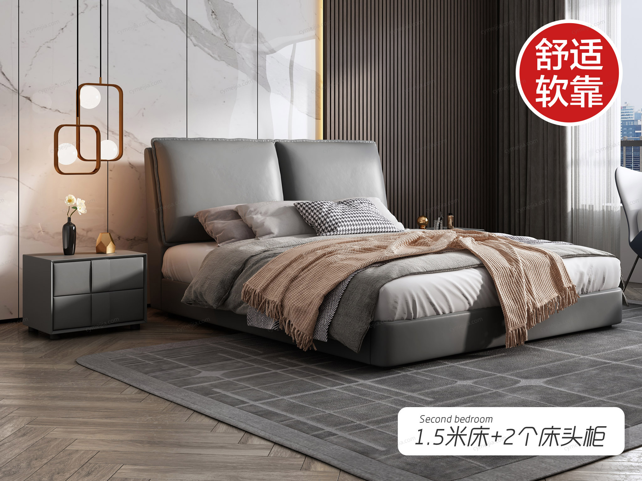| 床头柜: | 长500*宽400*高400mm | 皮艺+中纤板+塑料脚 | ×2 | 卡罗亚 | 广东佛山 | |