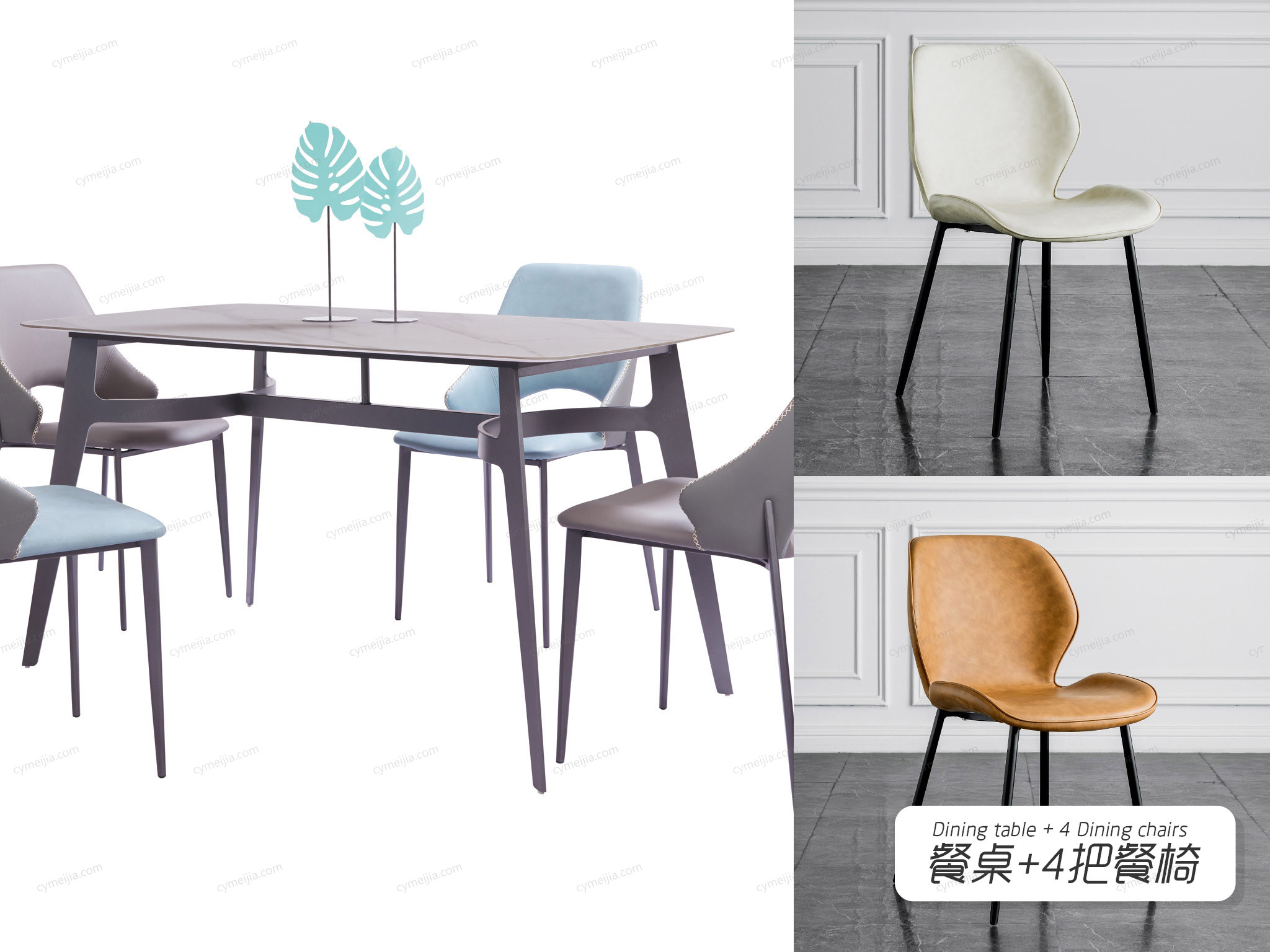 | 餐椅: | 420*470*845mm | PU皮+高回弹海棉+实木弯板+底架碳素钢 | ×2 | 斐亚家居 | 广东佛山 |