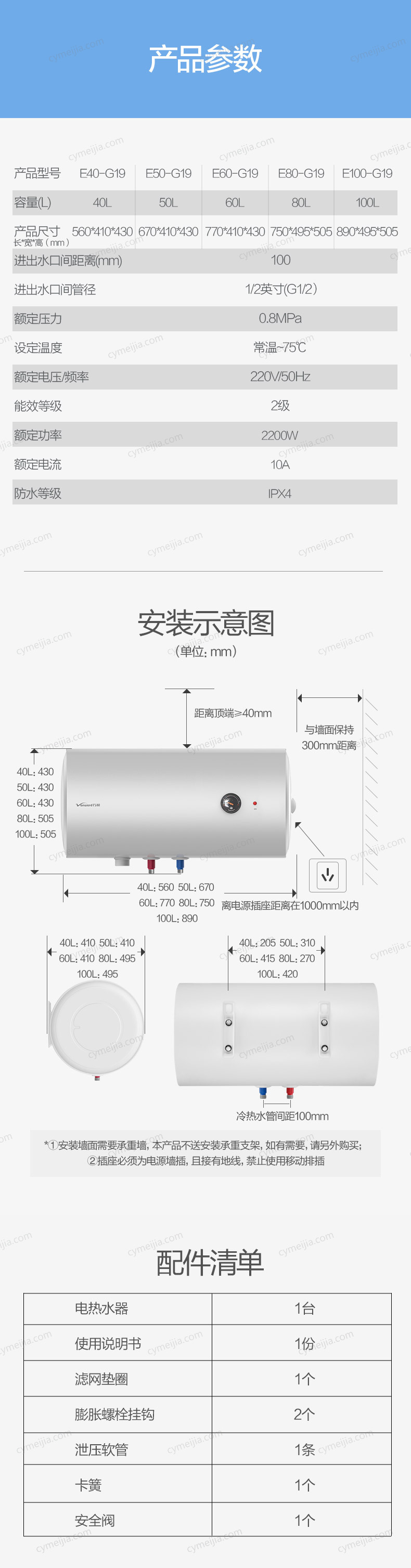 | 产地 : 广州 | 产品功能 : 1)万和双盾安全防护系统,防漏电、防触电;2)万和潜心研制的310S速热发热管,针对中国水质,用电环境及家庭频繁使用等情况,内外兼修,强化加热;3)万和低位层流混合技术,使冷水有序进入,不扰流,不影响顶层热水;4)集合万和电热水器的五大性能超强内胆,保用八年,电阻镁棒,终身免更换,超厚保温聚能发泡层等;5)超温保护、防干烧保护、强弱电分离保护等安全保护;6)智能控制,72小时断电记忆,杀菌抑菌功能;6倍增容功能、省电浴功能(省电40%);7)智能热水量提醒,用水一目了然;8)蓝金刚三层内胆,抗腐蚀、抗水压;9)创新节能保温技术,产品能效等级为:2级 | 运费说明 : 包邮 送货到家 | |