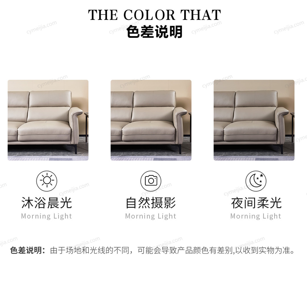 | 产品材质 : | 接触面进口头层黄牛皮+进口云杉木框架+高回弹海绵 |