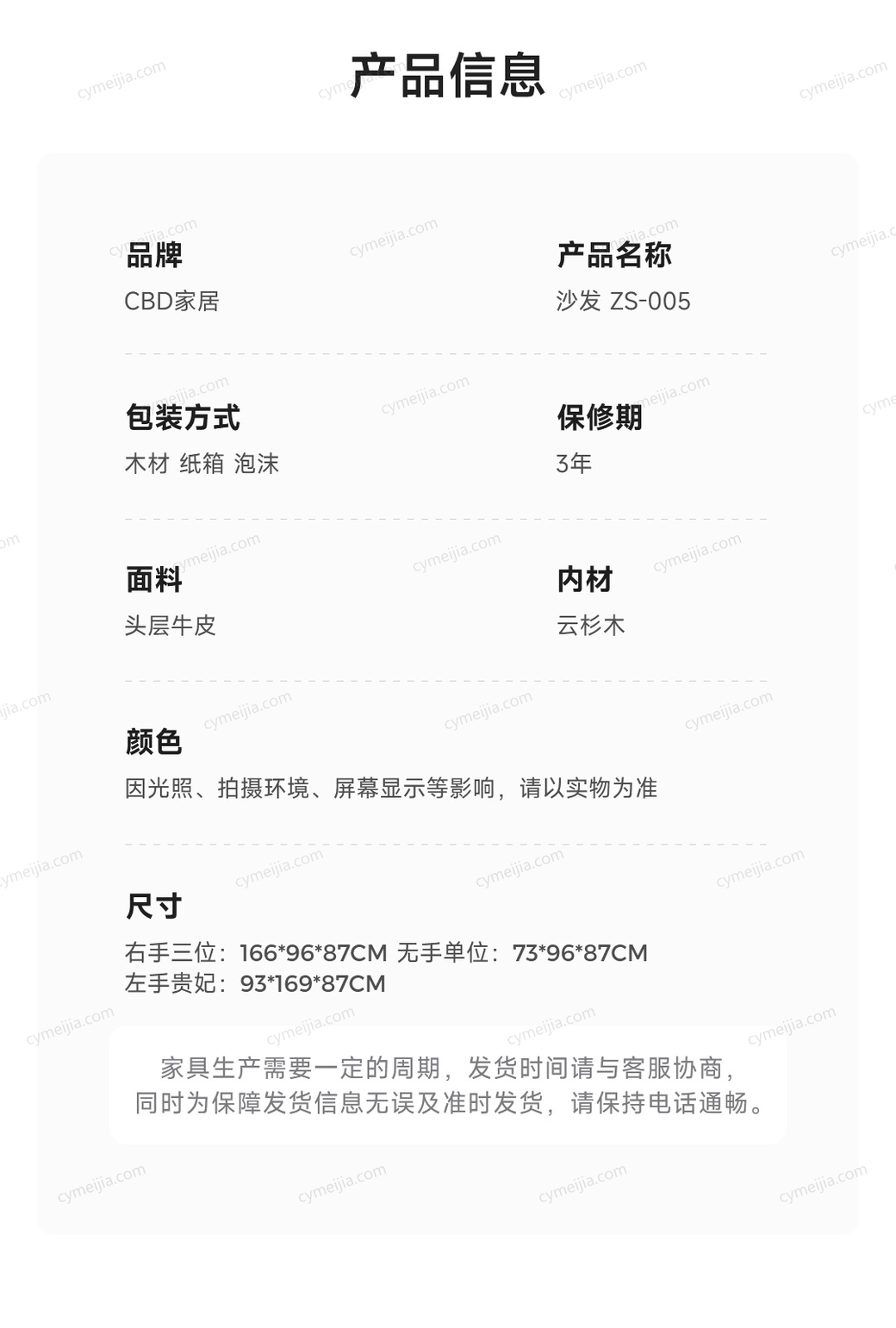 | 产品材质 : 接触面进口头层黄牛皮+非接触面仿进口头层黄牛皮+俄罗斯云杉木+东亚海绵 | 包件数 : 2 | 包装体积(m3) : 3.48 | |