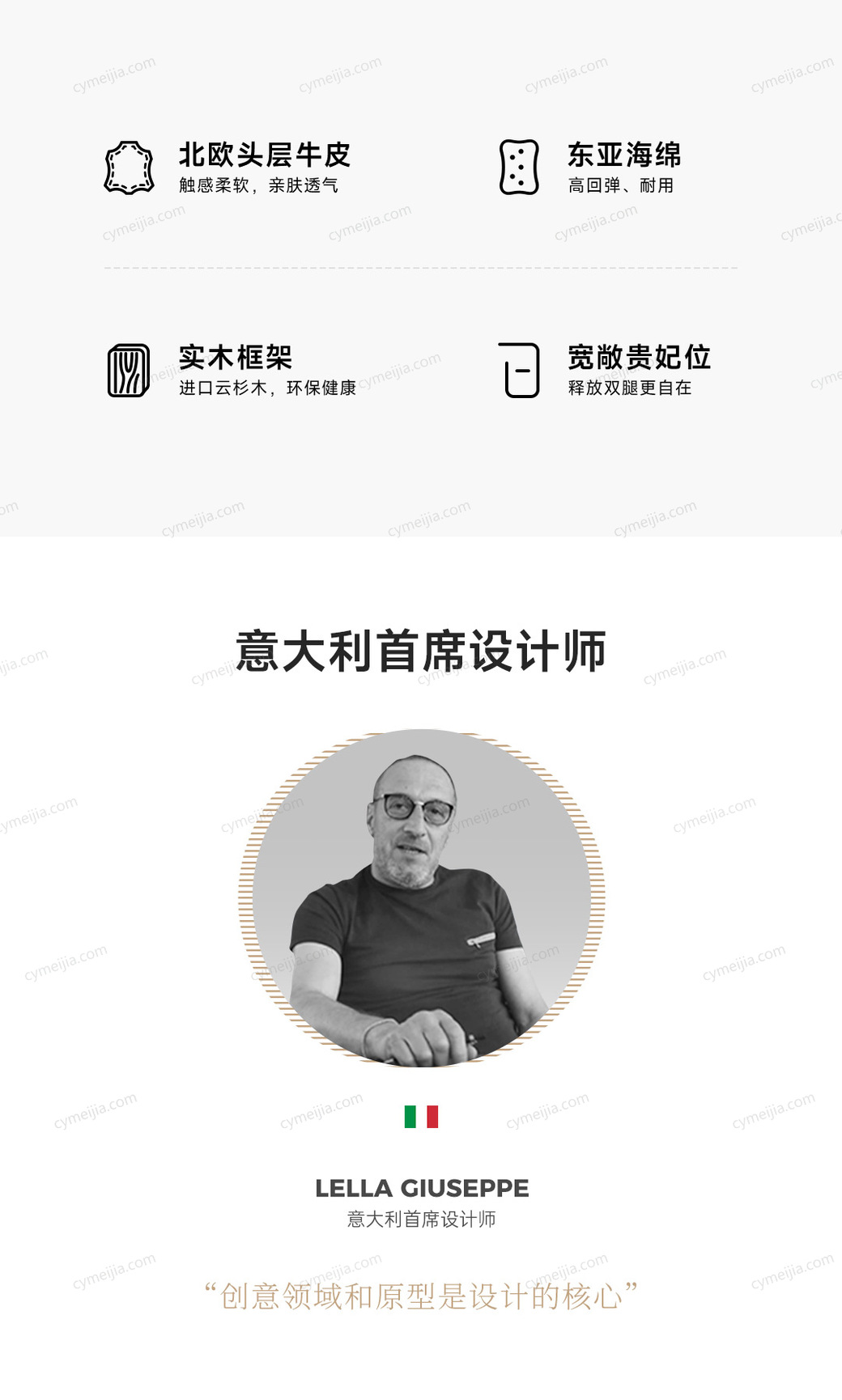 | 产品材质 : | 接触面进口头层黄牛皮+非接触面仿进口头层黄牛皮+俄罗斯云杉木+东亚海绵 |