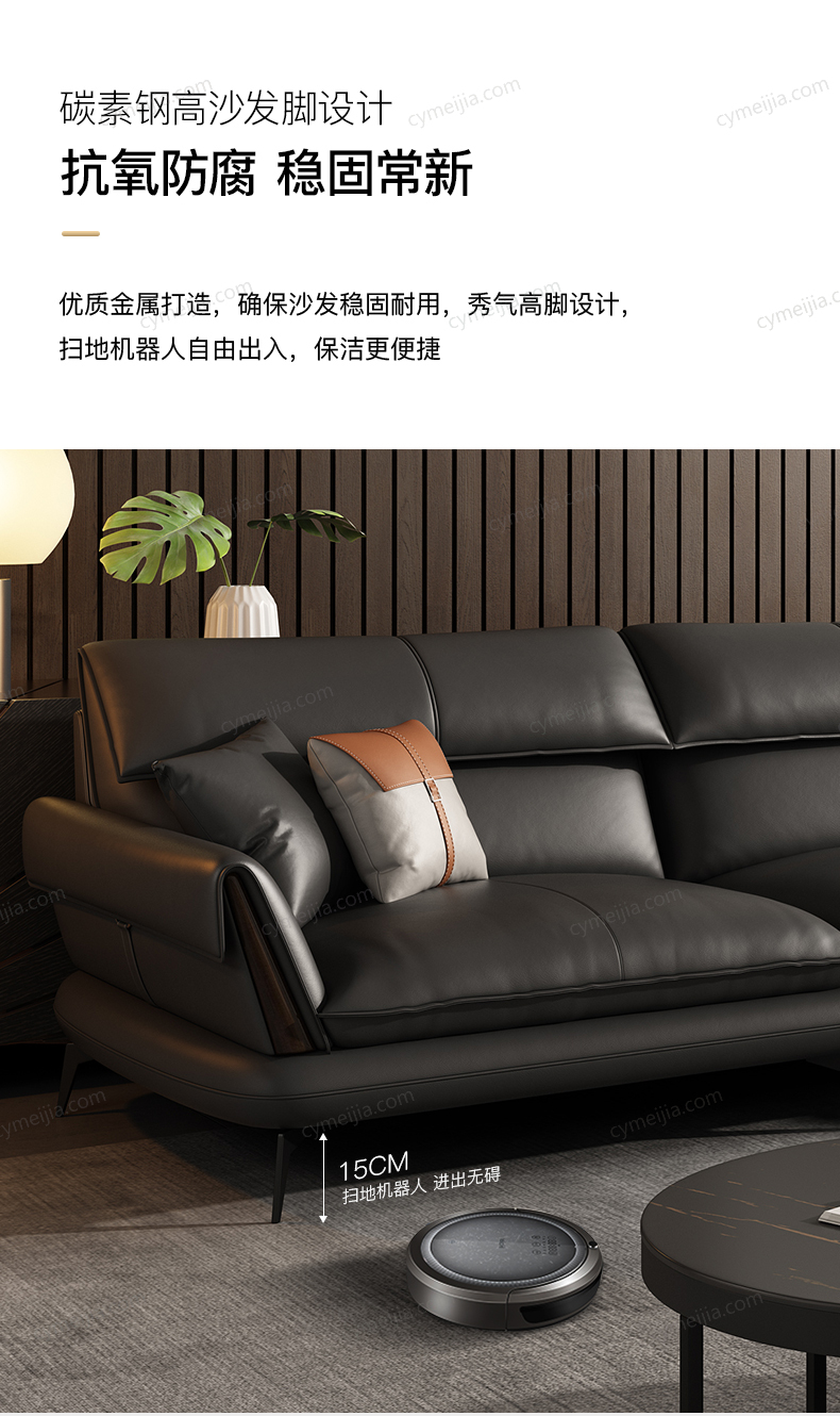 | 产品材质 : | 仿真皮+高密度海绵+俄罗斯落叶松实木框架+15公分哑黑五金脚 |