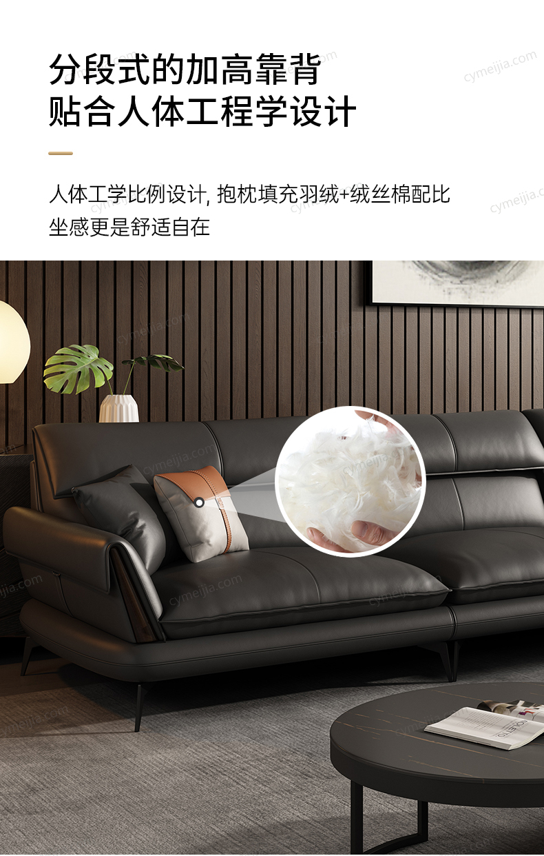 | 产品材质 : | 接触面进口头层黄牛皮+高密度海绵+俄罗斯落叶松实木框架+15公分哑黑五金脚 |