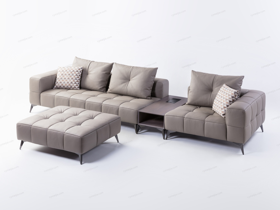 | 产品材质 : | 沙发:接触面头层进口小黄牛皮+鹅绒靠包+高密度海绵+俄罗斯落叶松实木框架;中柜:中纤板贴木皮+E1级环保板 |