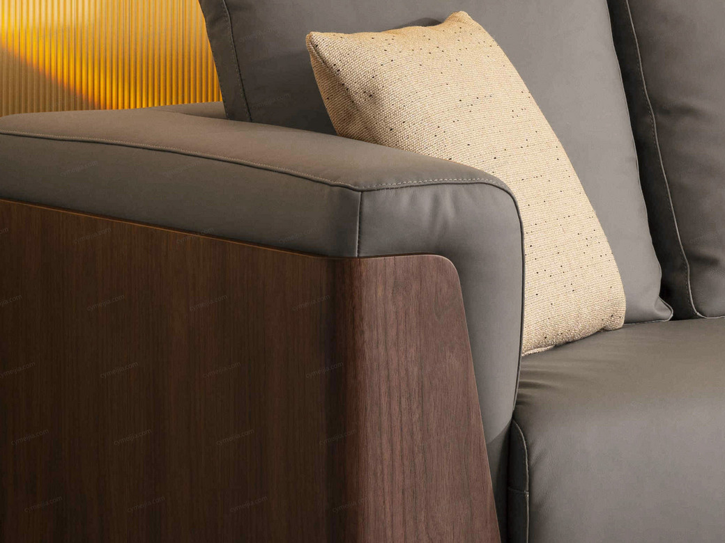 | 产品材质 : | 接触面进口头层小黄牛皮+鹅绒靠包+高密度海绵+俄罗斯落叶松实木框架+扶手贴木皮 |