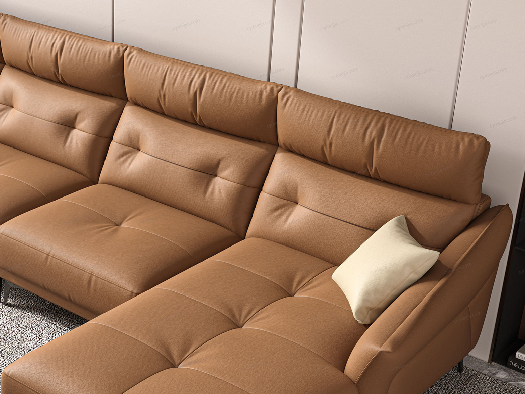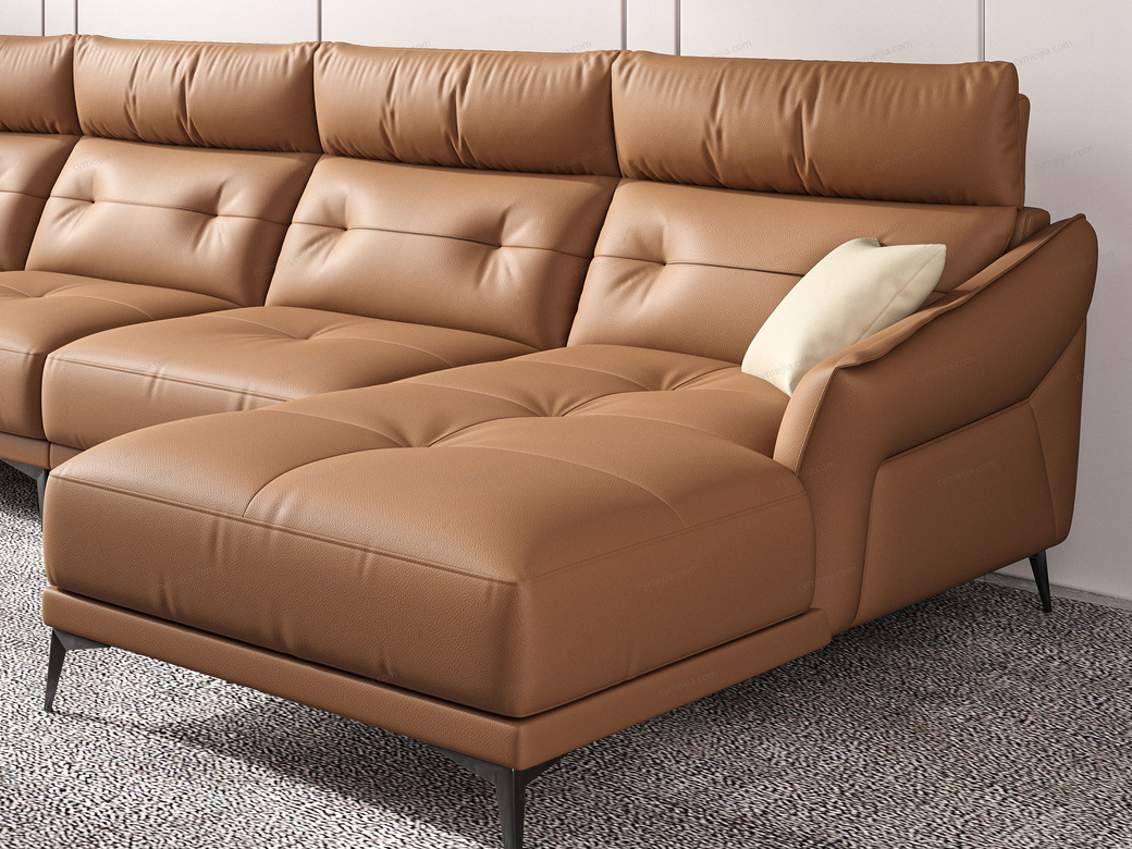 | 产品材质 : | 接触面进口头层黄牛皮+羽绒靠包+高密度海绵+俄罗斯落叶松实木框架+哑黑五金脚 |