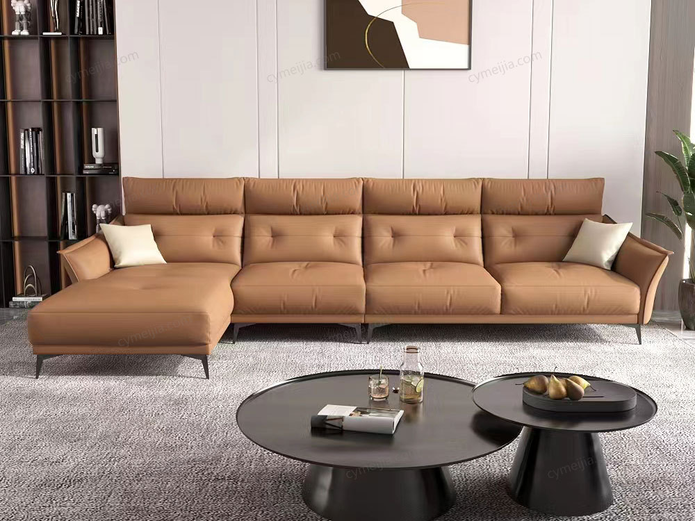 | 产品材质 : 接触面进口头层黄牛皮+羽绒靠包+高密度海绵+俄罗斯落叶松实木框架+哑黑五金脚 | 包件数 : 4 | 包装体积(m3) : 2.40 | |