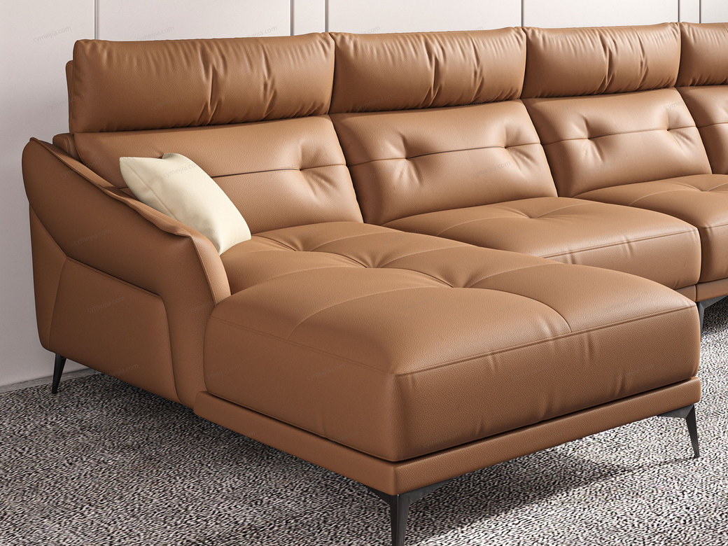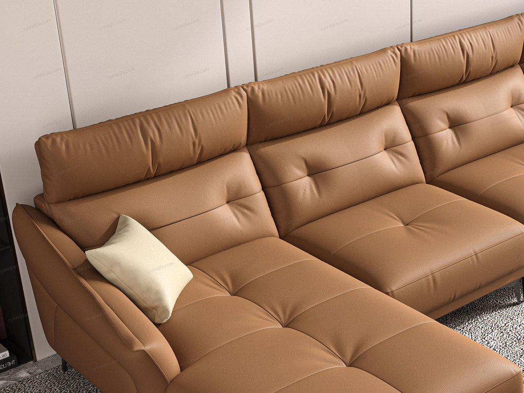 | 产品材质 : | 接触面进口头层黄牛皮+羽绒靠包+高密度海绵+俄罗斯落叶松实木框架+哑黑五金脚 |