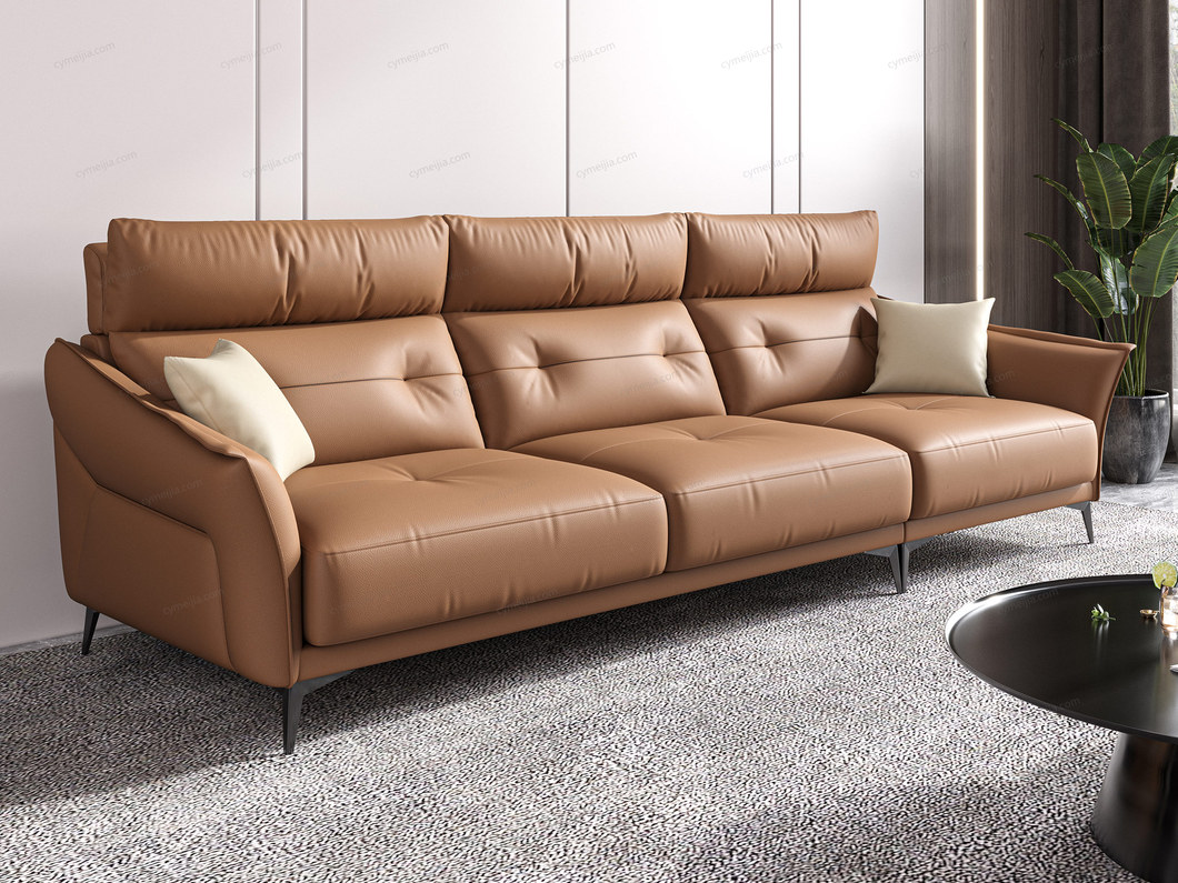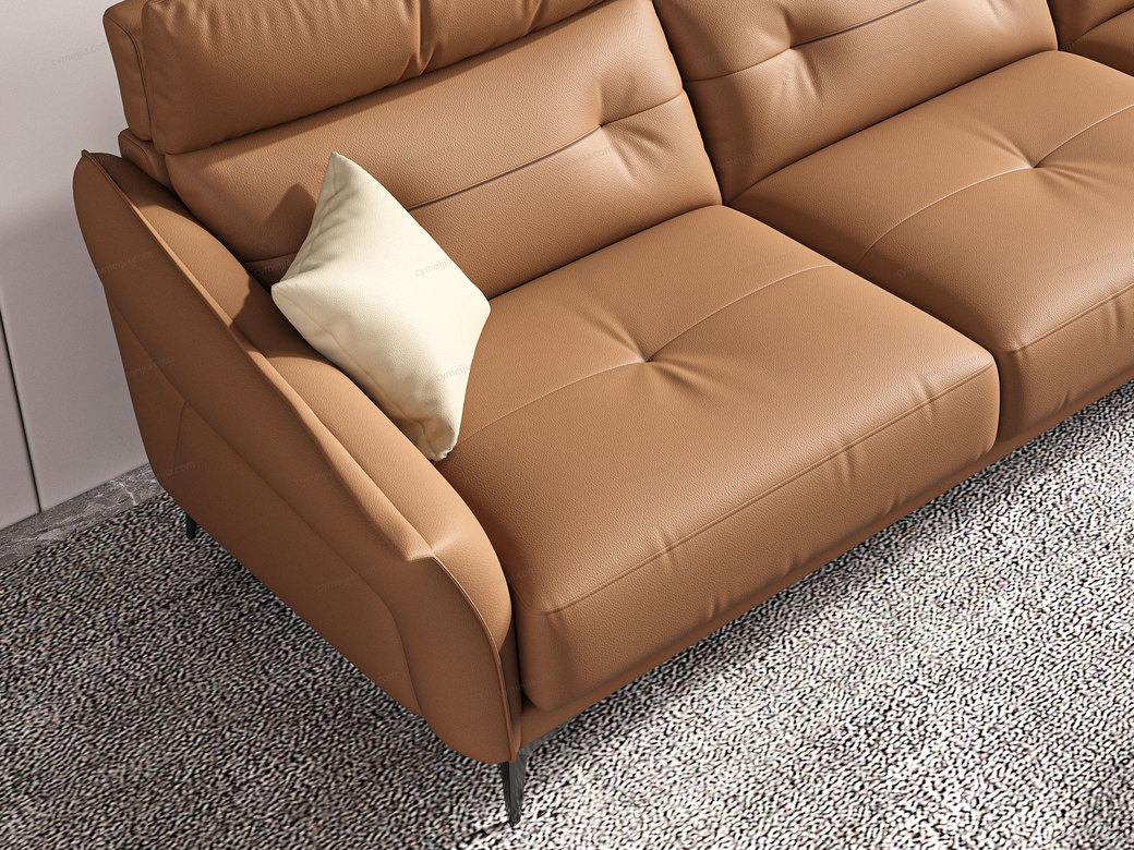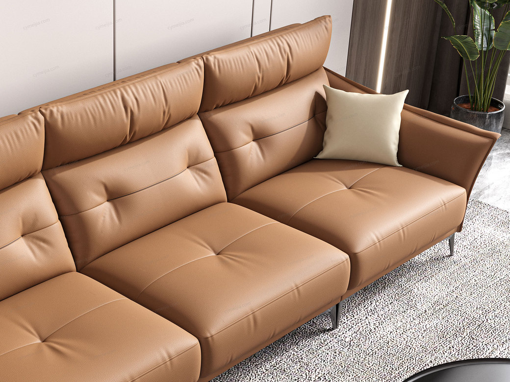 | 产品材质 : | 接触面进口头层黄牛皮+羽绒靠包+高密度海绵+俄罗斯落叶松实木框架+哑黑五金脚 |