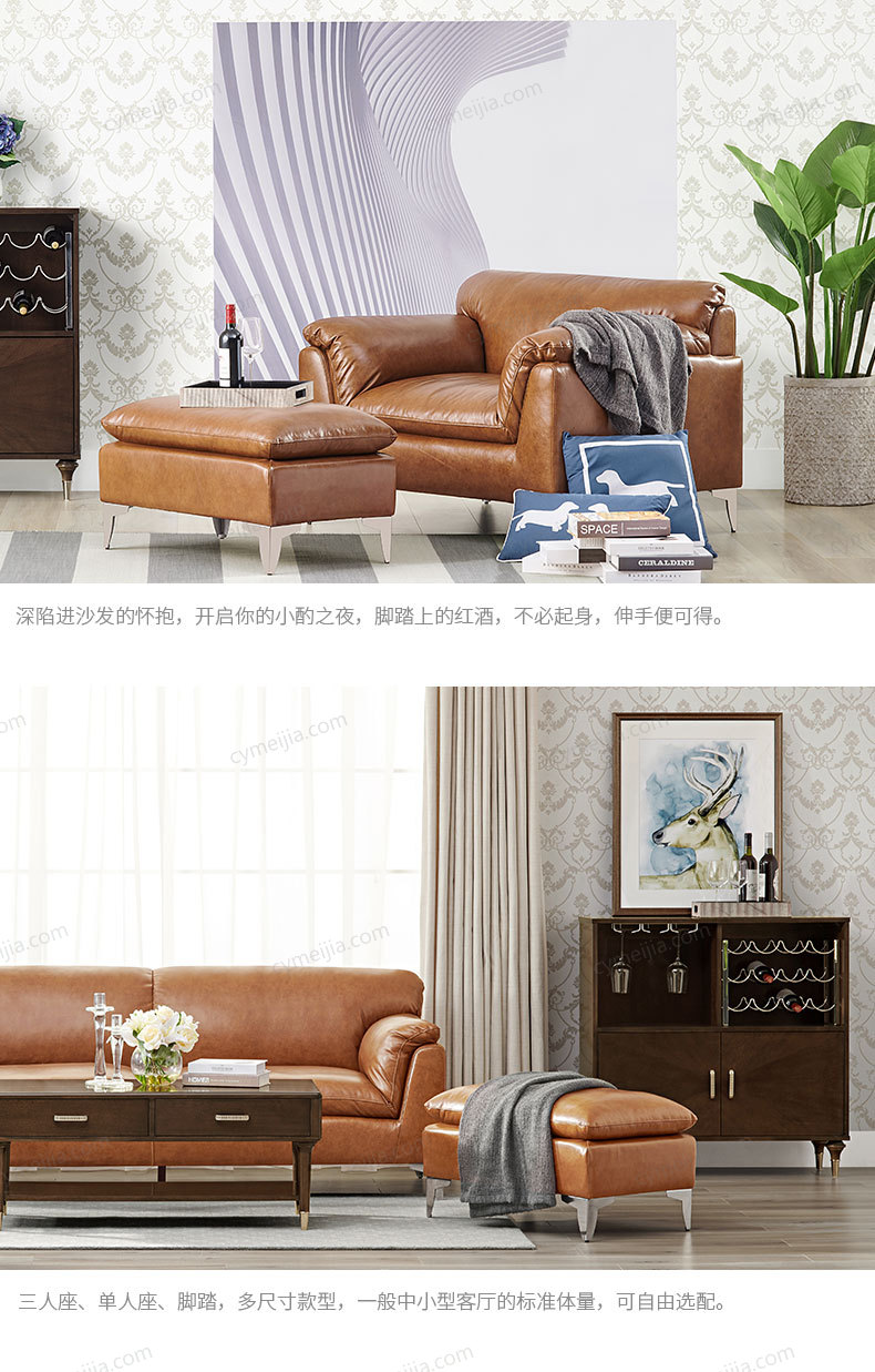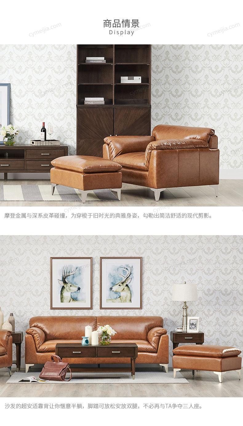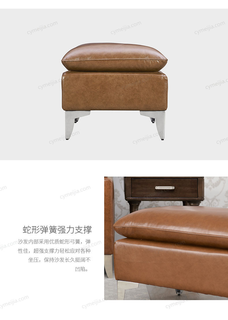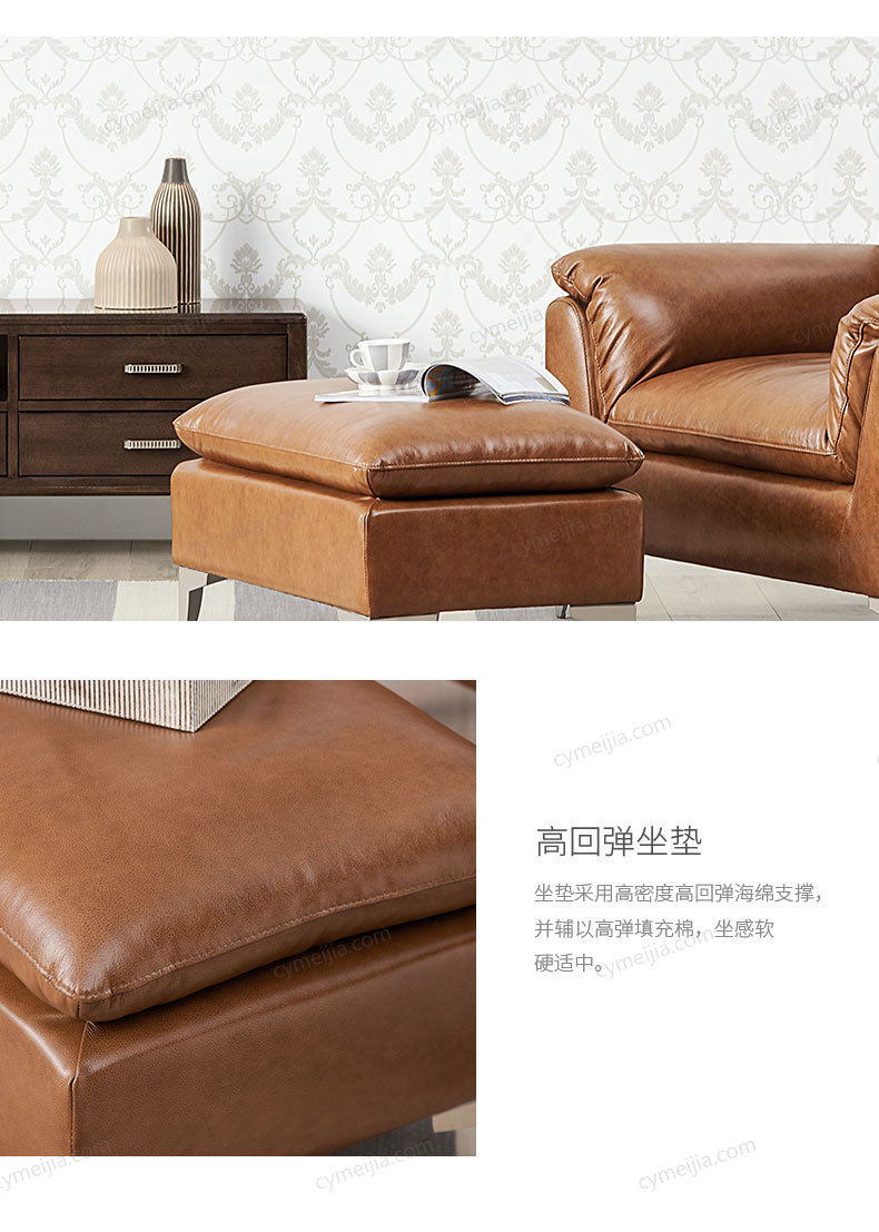 | 产品材质 : 接触面进口头层黄牛皮+高密度海绵+高弹绵+金属底脚 | 包件数 : 1 | 包装体积(m3) : 0.25 | |