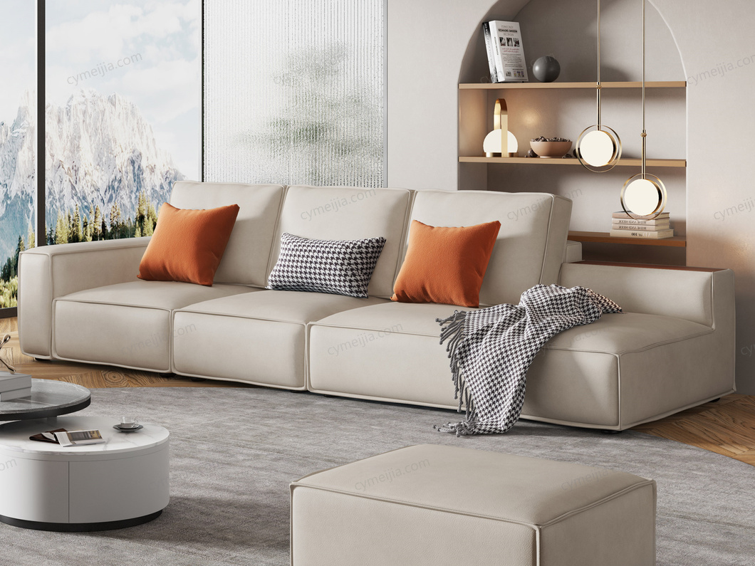 | 产品材质 : 接触面进口头层黄牛皮+乳胶+羽绒+高密度海绵+俄罗斯落叶松实木框架 | 包件数 : 3 | 包装体积(m3) : 2.4 | |