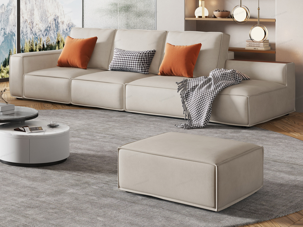 | 产品材质 : 接触面进口头层黄牛皮+羽绒+高密度海绵+俄罗斯落叶松实木框架 | 包件数 : 3 | 包装体积(m3) : 2.64 | |