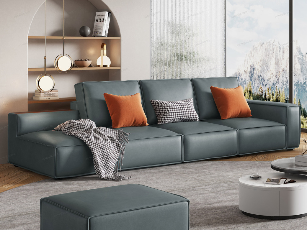 | 产品材质 : 接触面进口头层黄牛皮+羽绒+高密度海绵+俄罗斯落叶松实木框架 | 包件数 : 3 | 包装体积(m3) : 2.4 | |