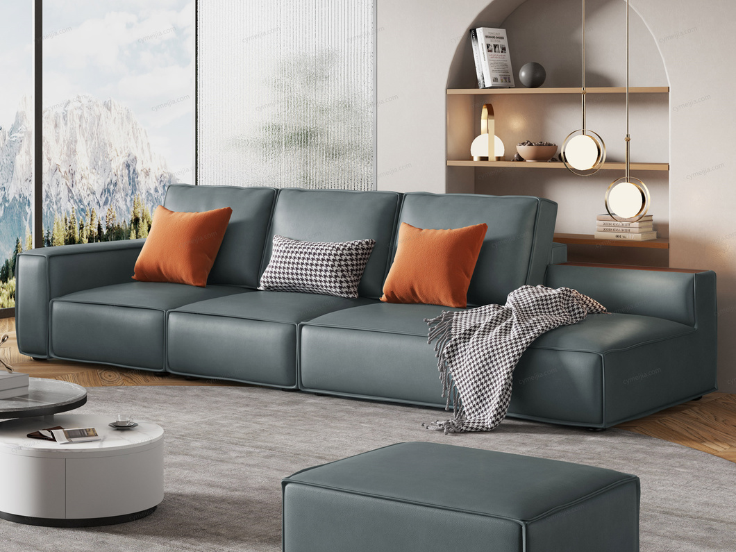 | 产品材质 : 接触面进口头层黄牛皮+羽绒+高密度海绵+俄罗斯落叶松实木框架 | 包件数 : 3 | 包装体积(m3) : 2.4 | |