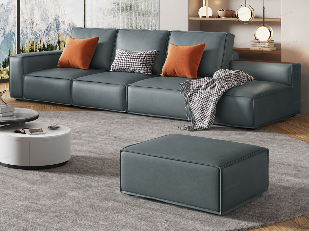 | 产品材质 : 接触面进口头层黄牛皮+羽绒+高密度海绵+俄罗斯落叶松实木框架 | 包件数 : 4 | 包装体积(m3) : 2.64 | |